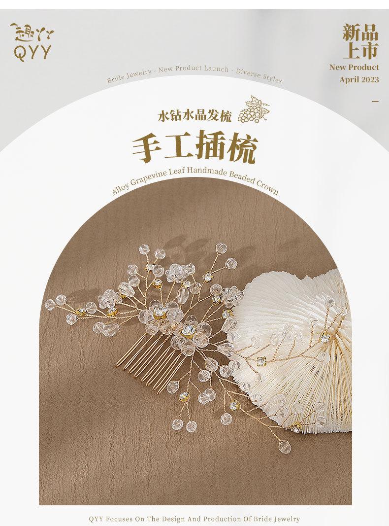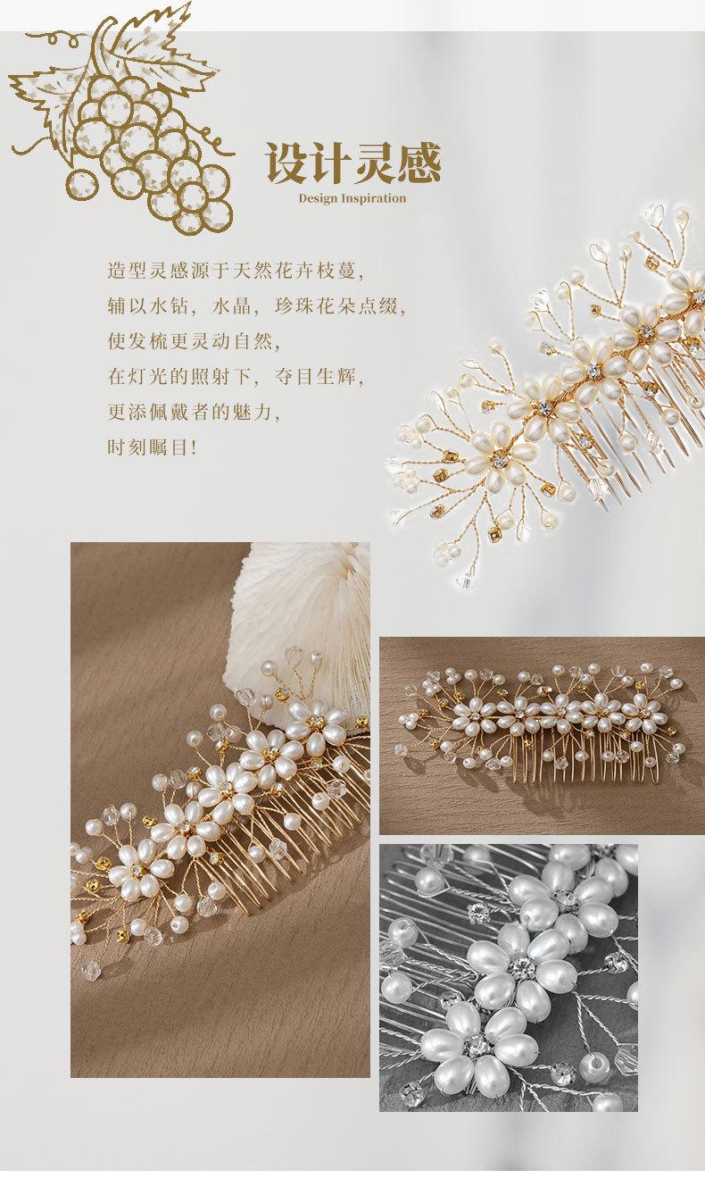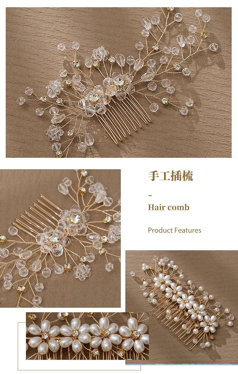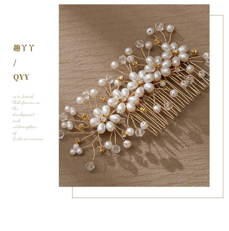 Tocado de novia europeo y americano hecho a mano con flores y cuentas, peineta para el cabello, accesorio para el cabello recogido para banquete de boda, peine con inserción de perlas de cristal vintage