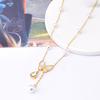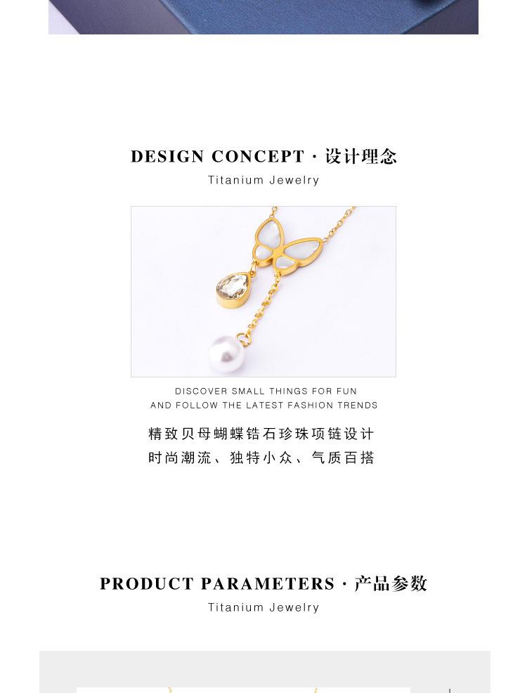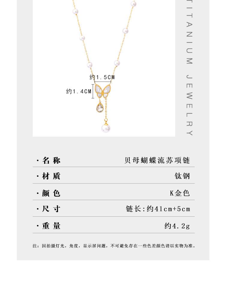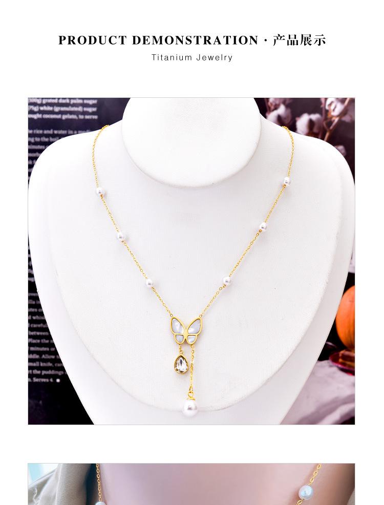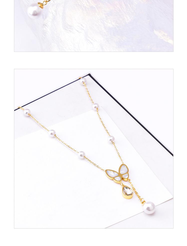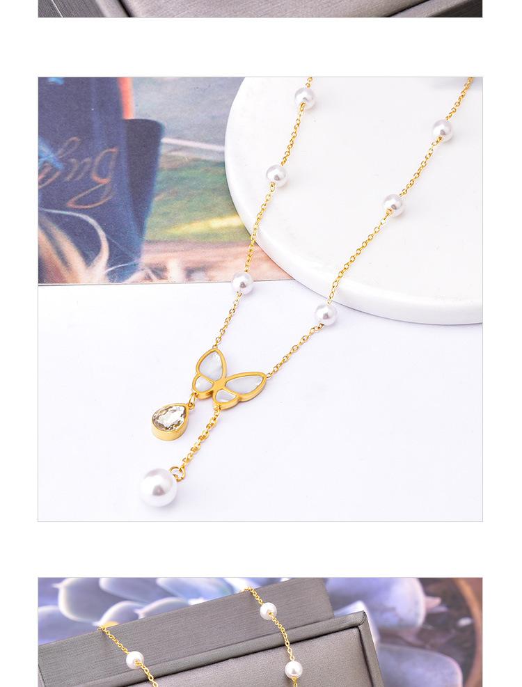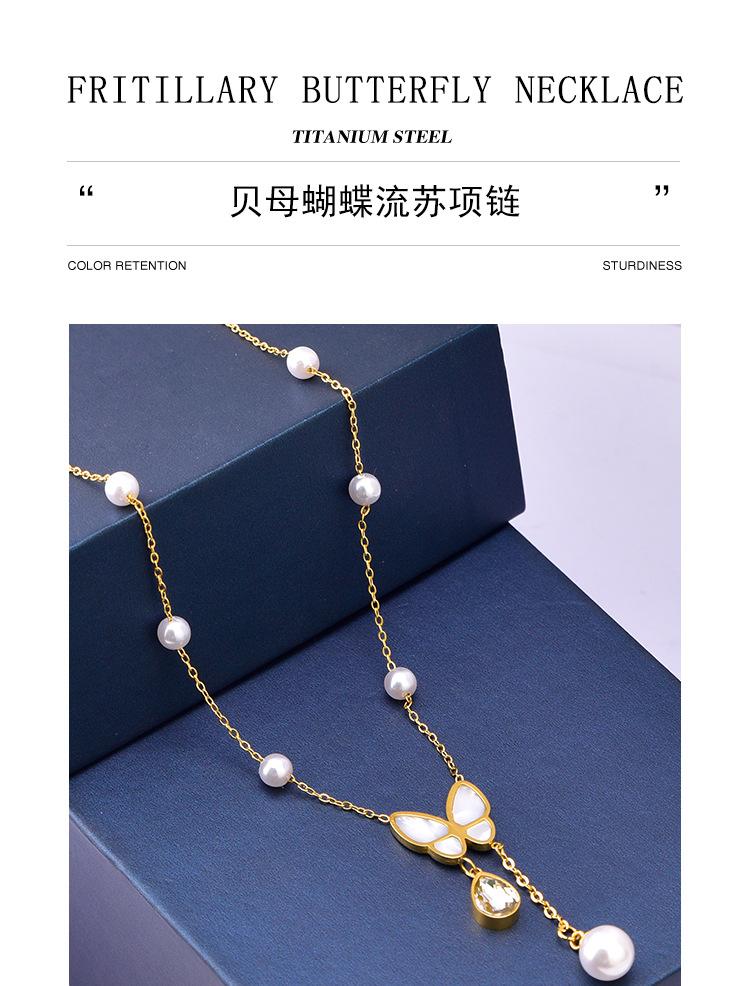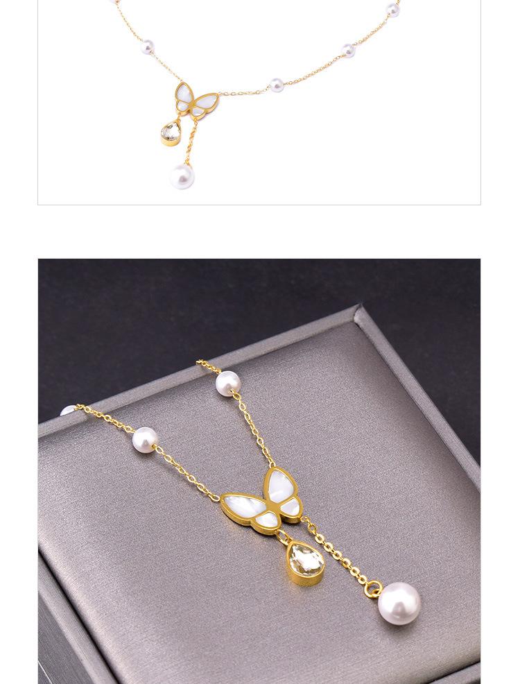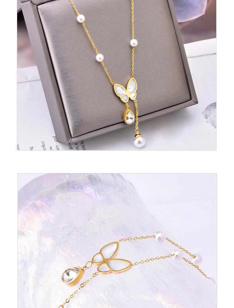 Collar de acero de titanio resistente a la decoloración con colgante de circonita en forma de gota y borla de perla con cadena de clavícula de mariposa de concha de moda de estilo coreano para mujer