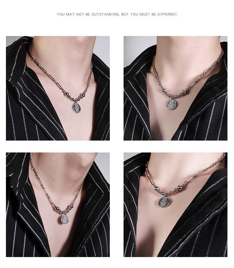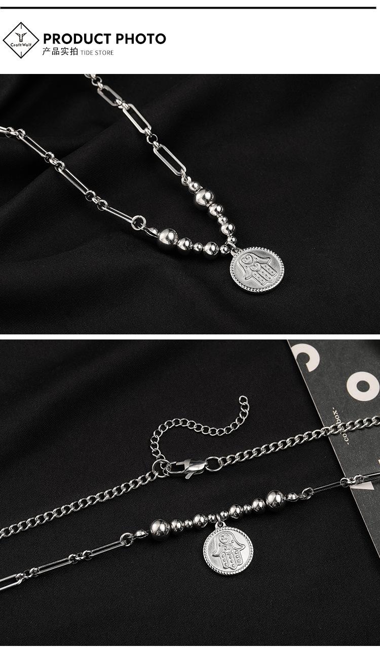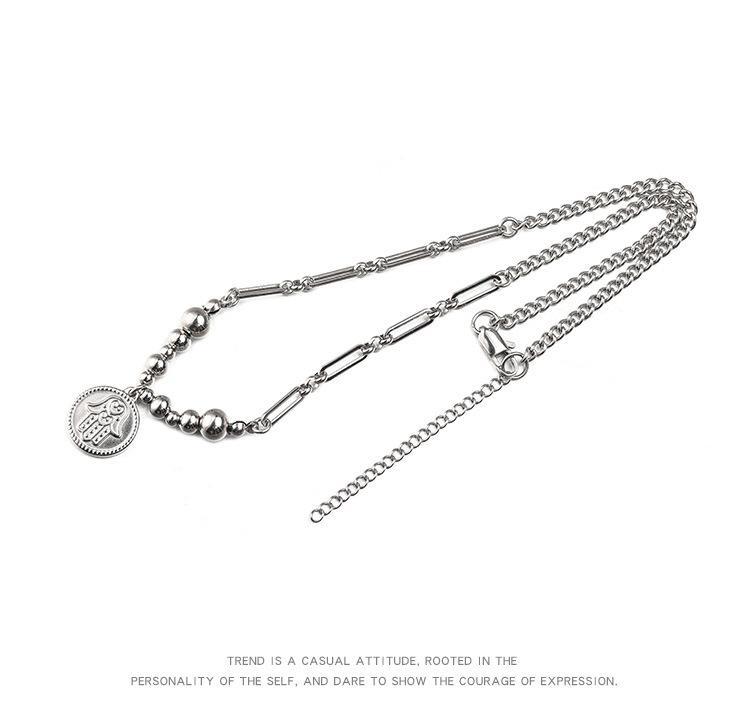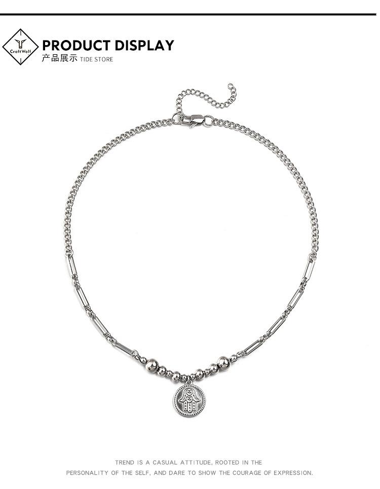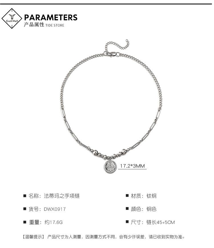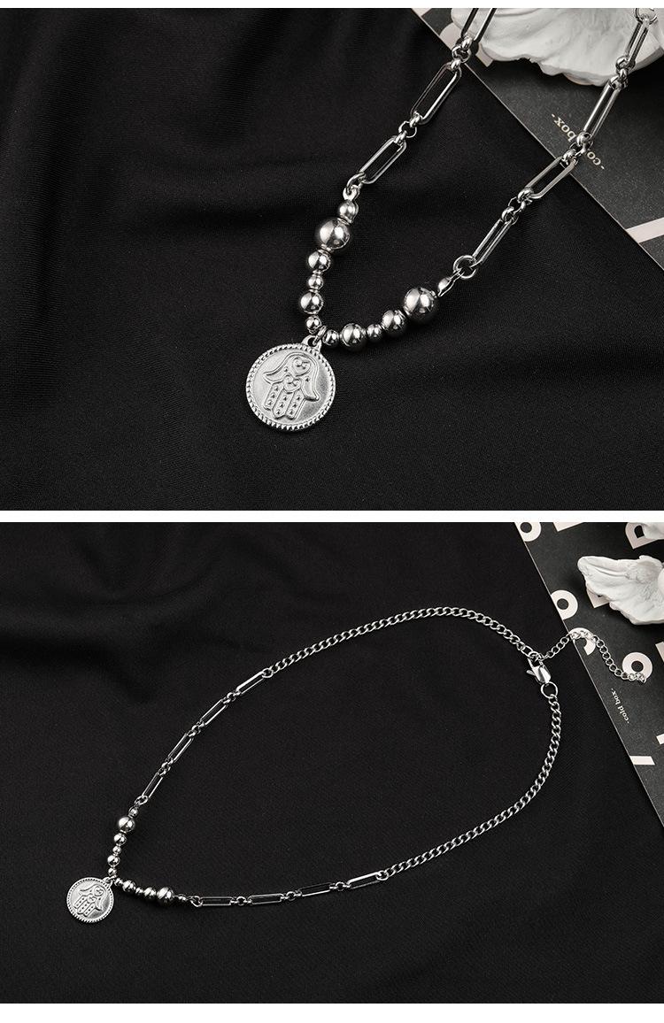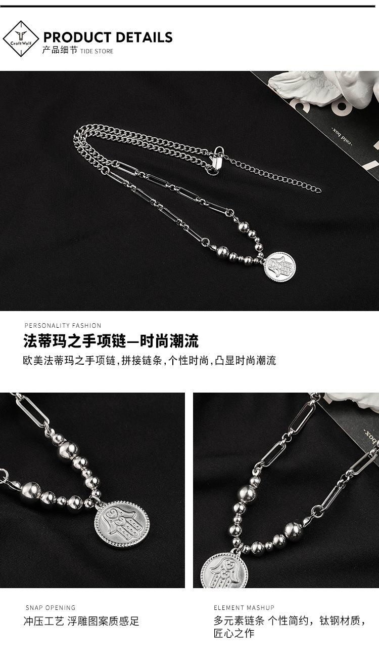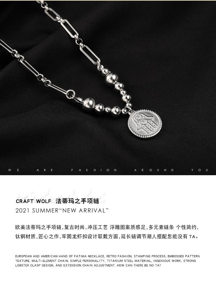 Collar de acero sin bordar con diseño de mano de Fátima, estilo hip-hop, con costuras de titanio y acero para hombres, estilo transfronterizo europeo y americano.