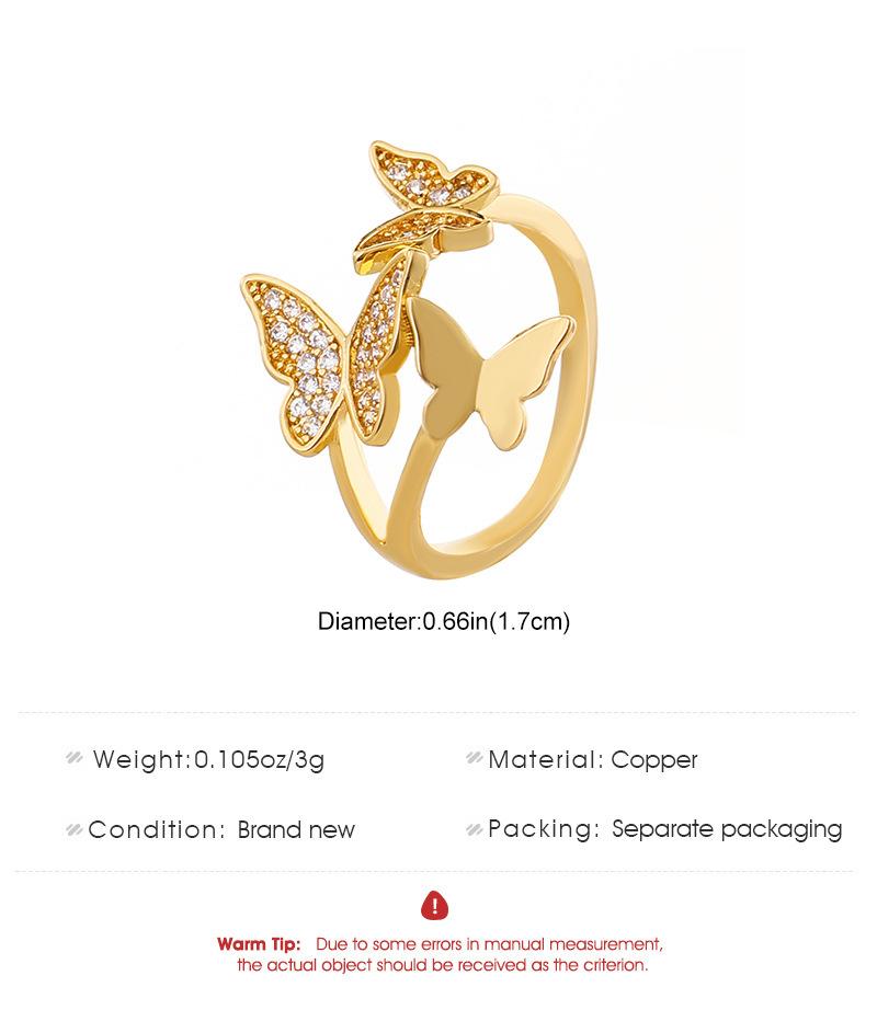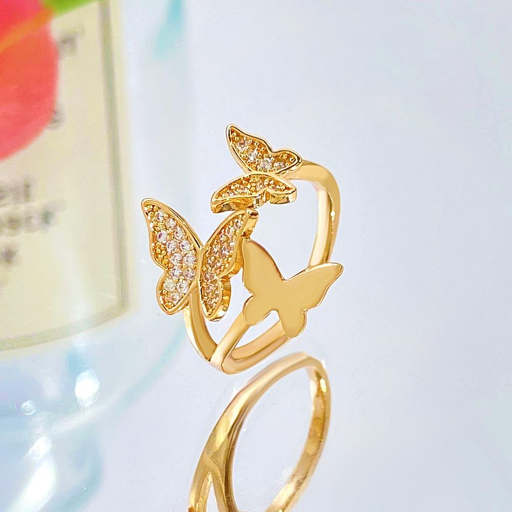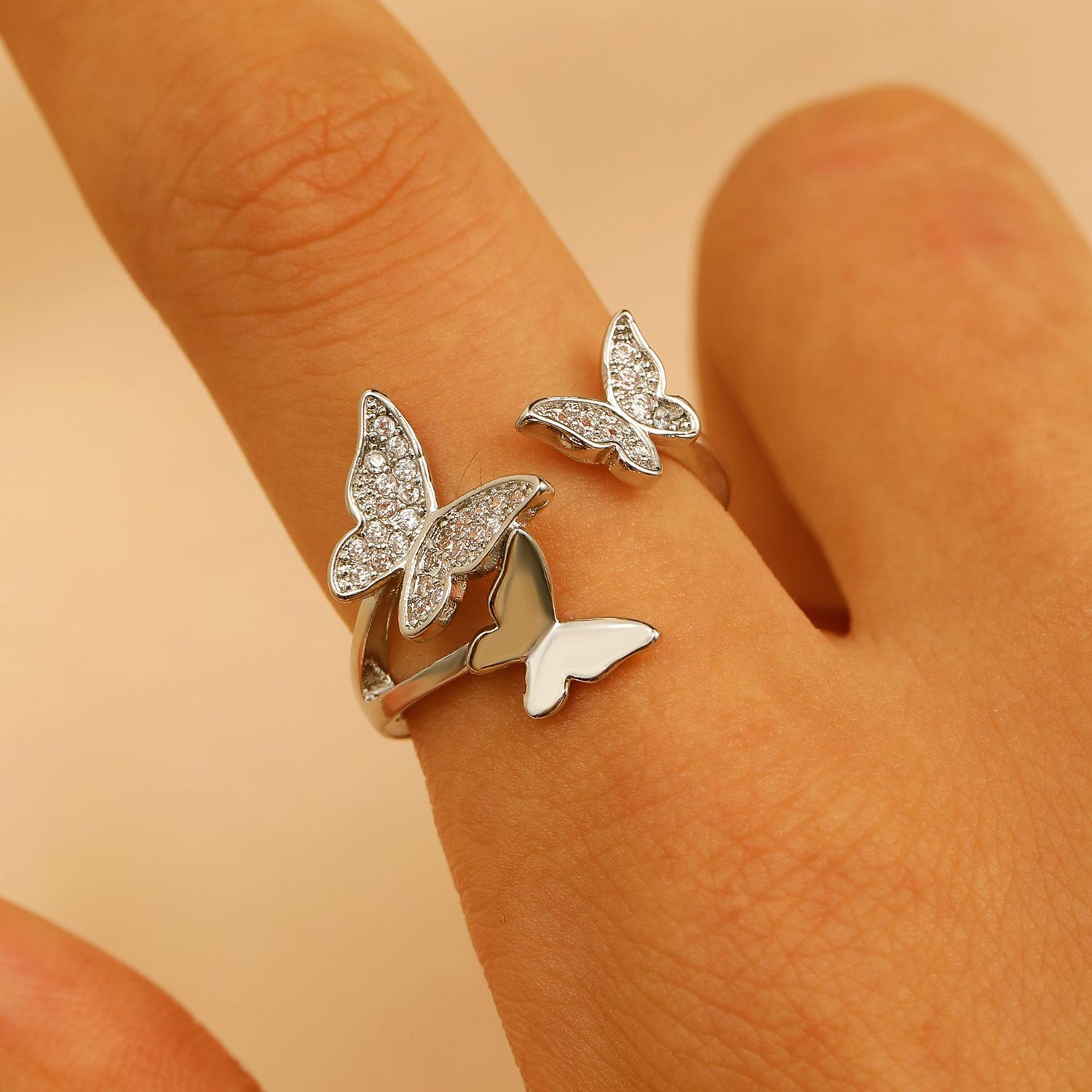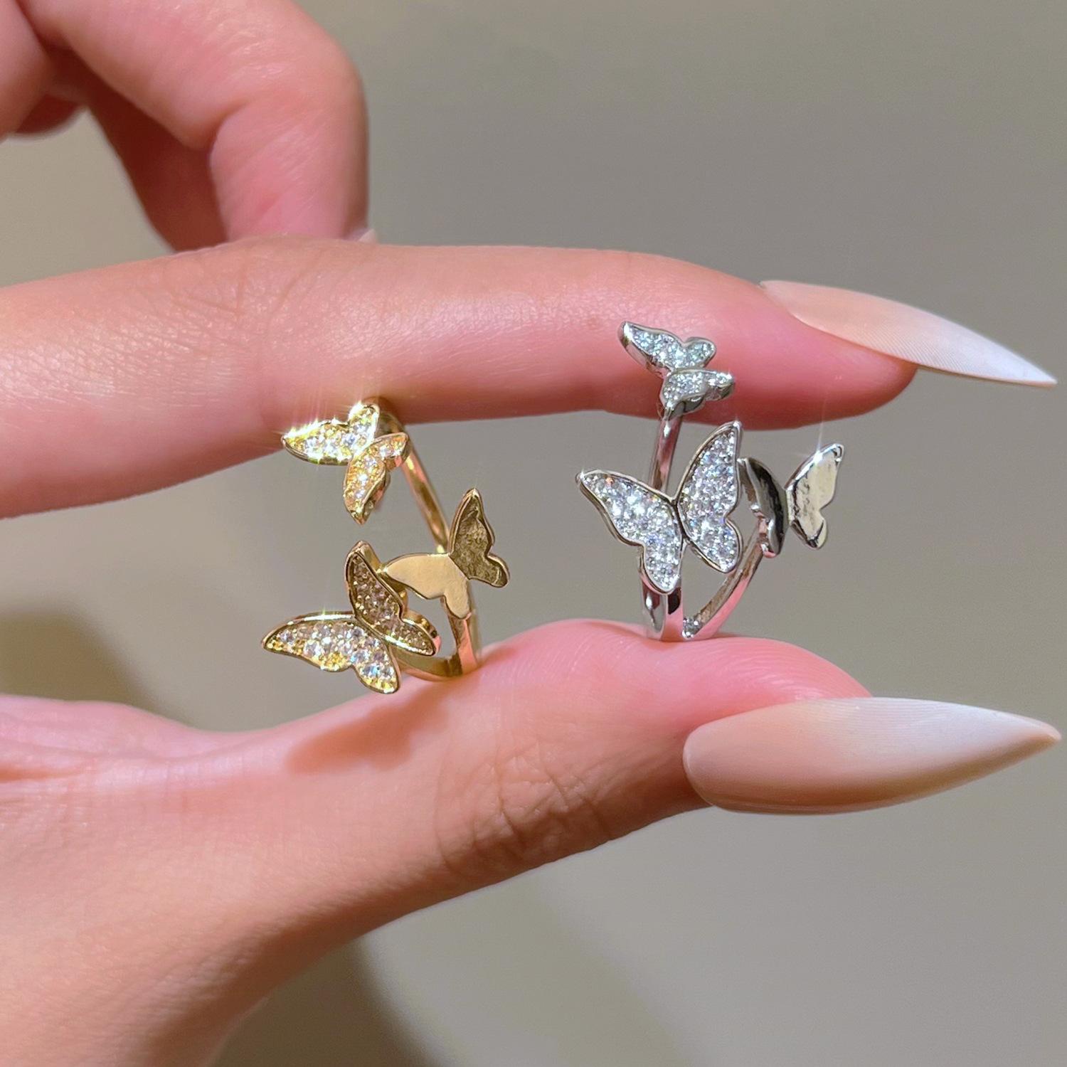 Nuevos Anillos de Mariposa Transfronterizos para Mujer Estilo Ins Europeo y Americano Diseño Creativo Cobre Diamante Anillos de Mariposa para Dedo Índice Venta al por Mayor
