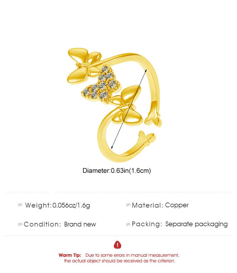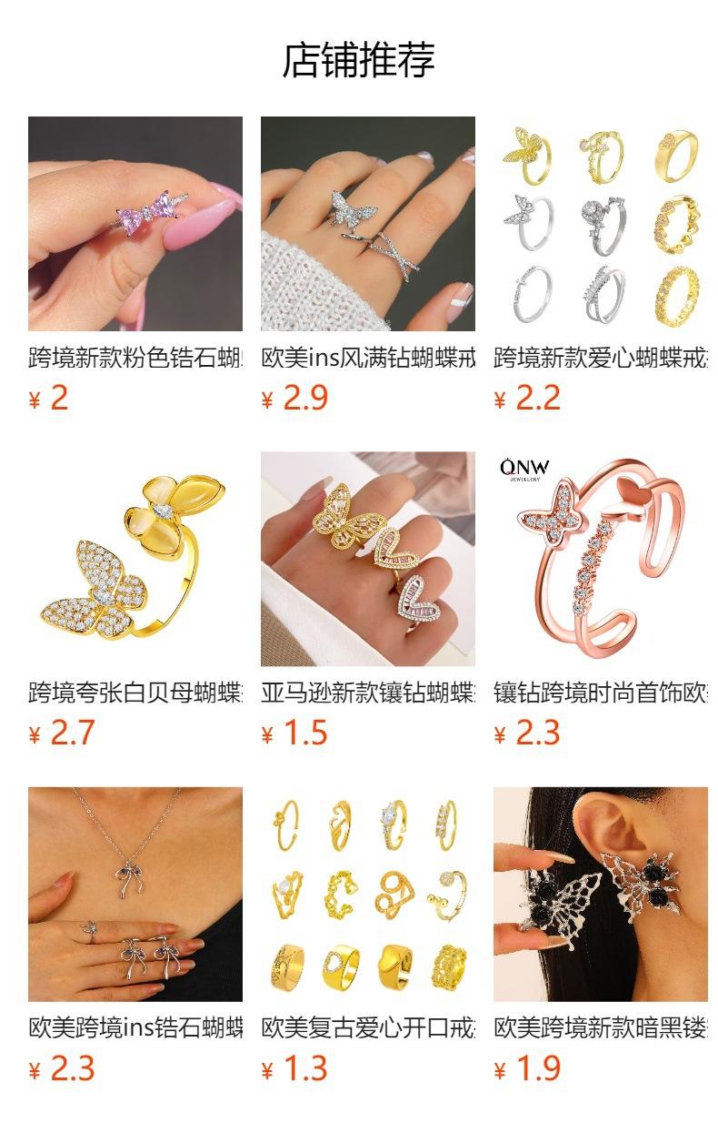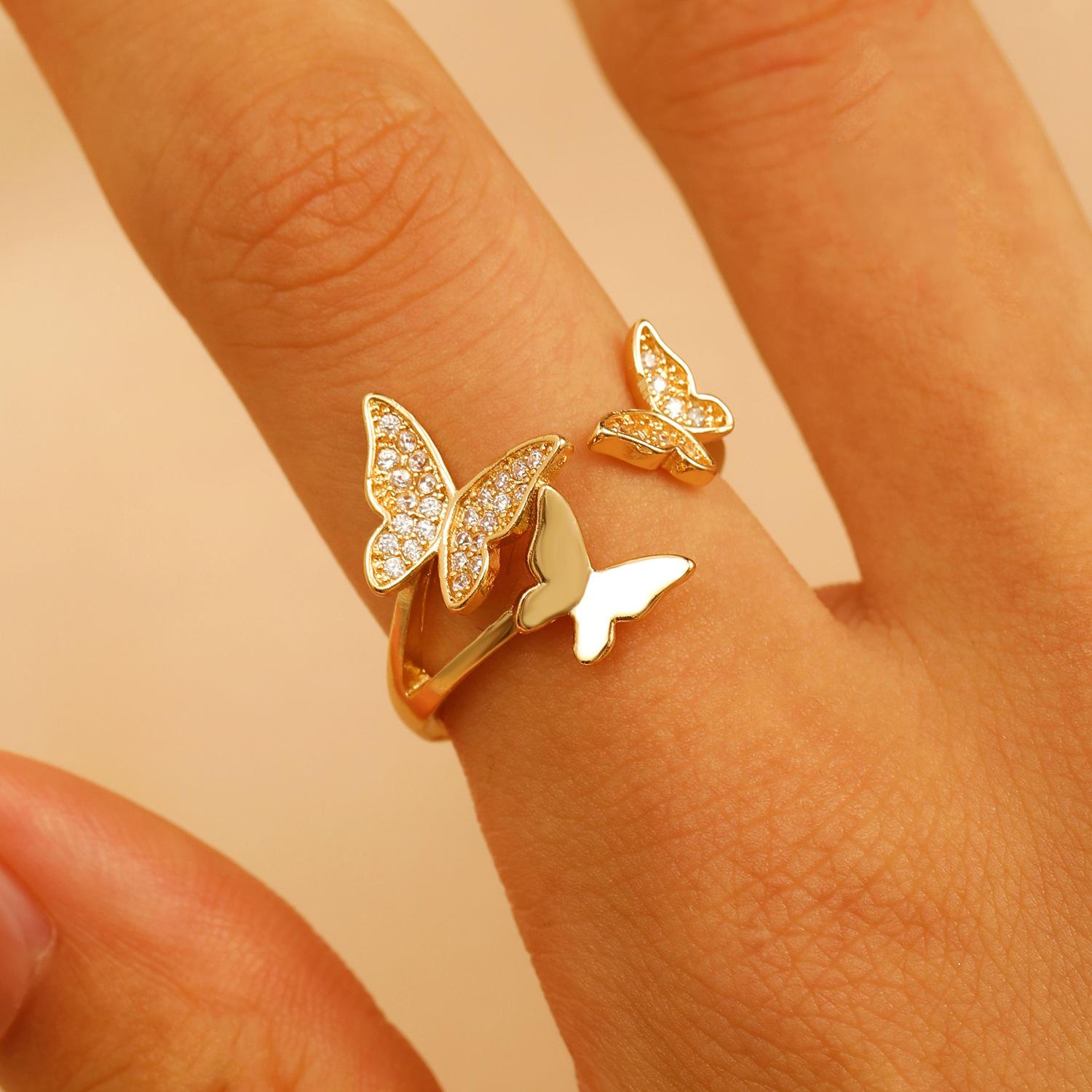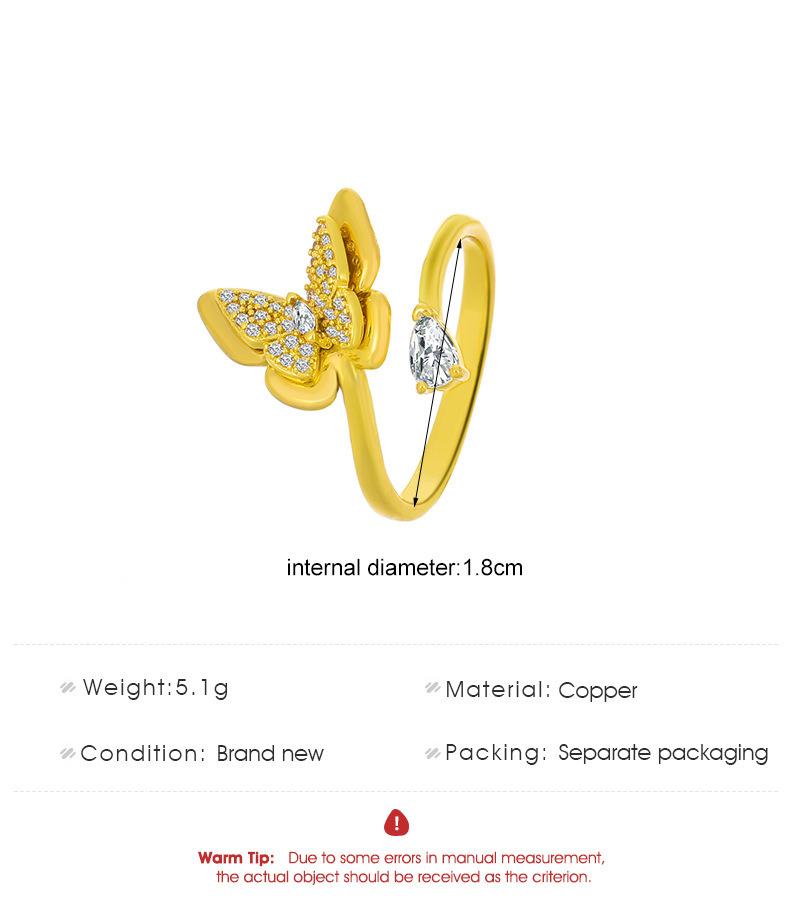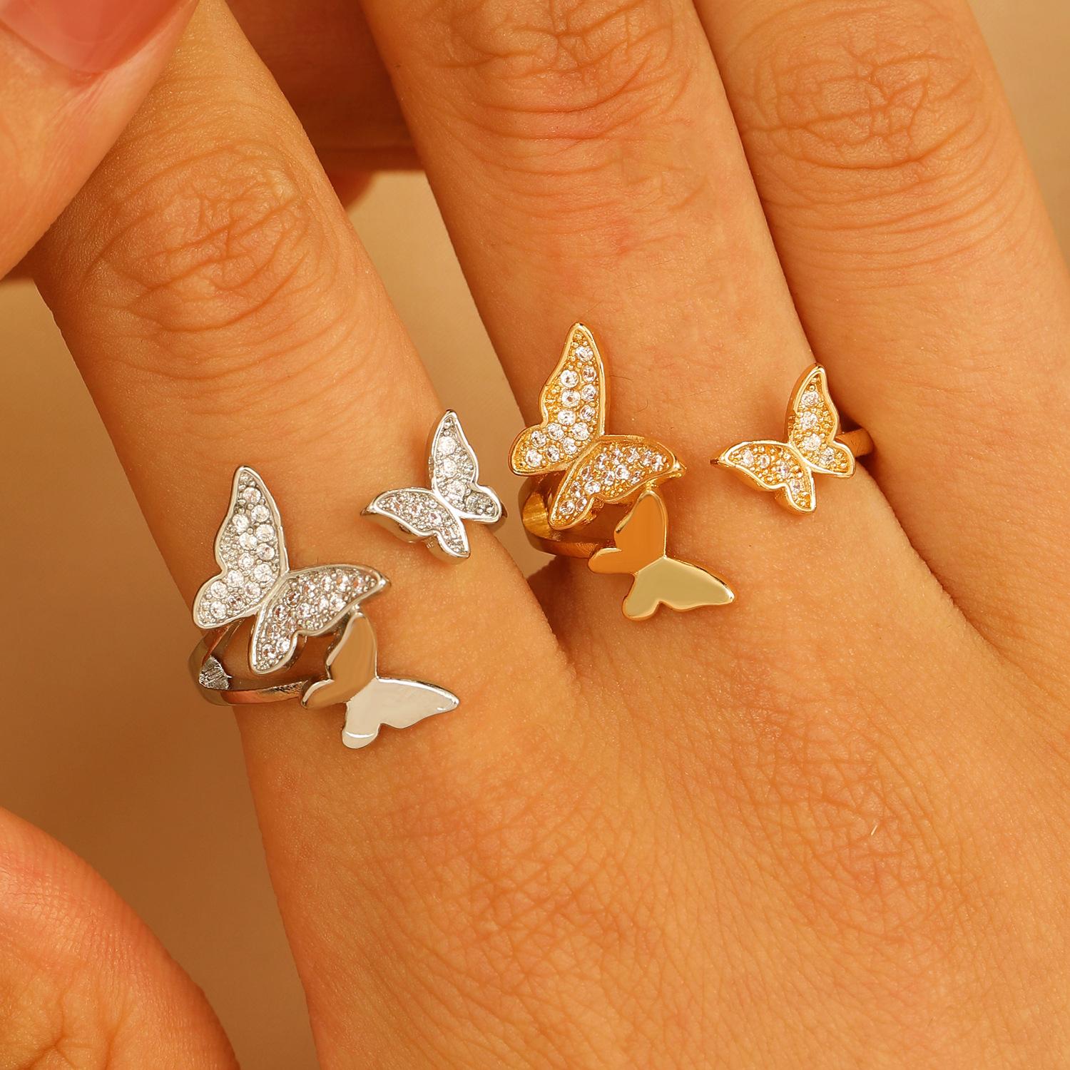 Nuevos Anillos de Mariposa Transfronterizos para Mujer Estilo Ins Europeo y Americano Diseño Creativo Cobre Diamante Anillos de Mariposa para Dedo Índice Venta al por Mayor