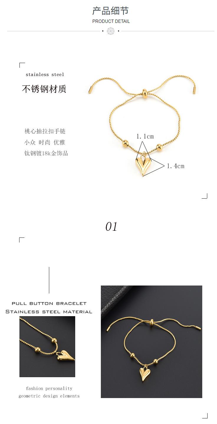 Compra Pulsera de lujo ligera de estilo francés con forma de corazón de melocotón, pulsera versátil con hebilla de amor, joyería de acero de titanio al por mayor al por mayor en Joom.pro