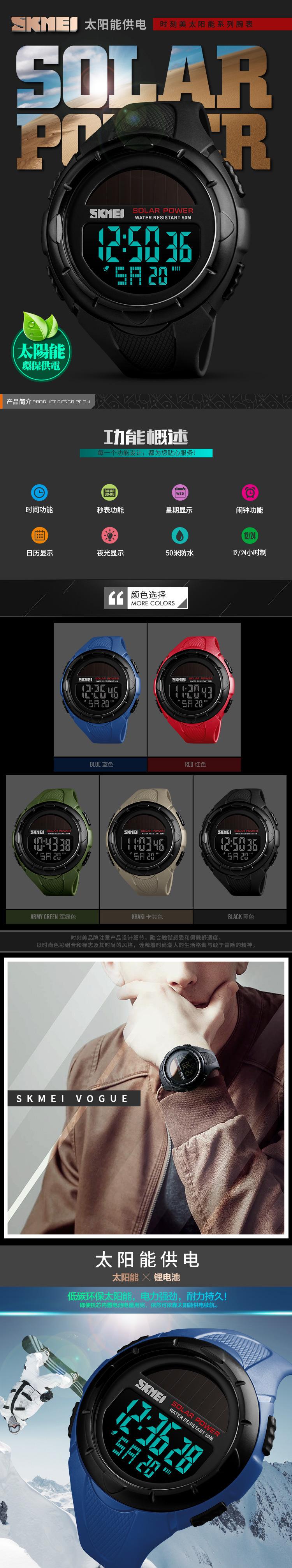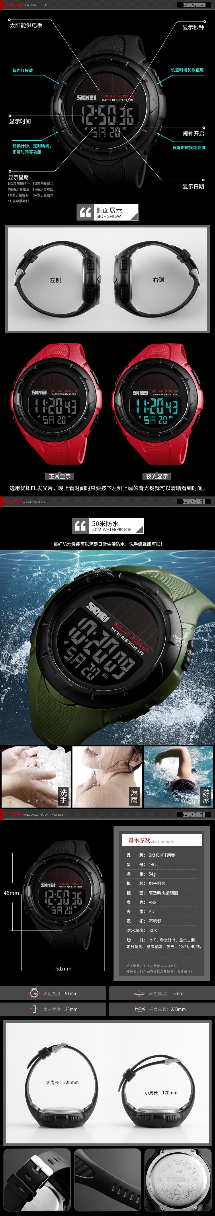Reloj electrónico SKMEI 1405 para estudiantes, con personalidad creativa y solar, multifuncional, resistente al agua.
