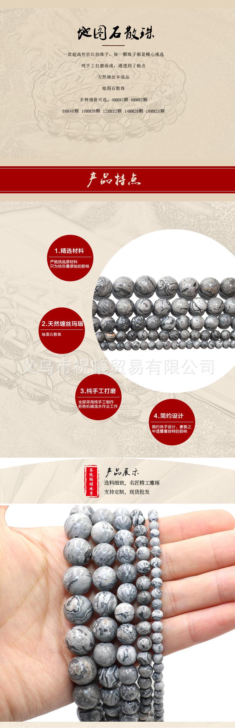 Ventas directas de fábrica de cuentas sueltas de piedra mapa natural, accesorios semiacabados para joyería hecha a mano DIY, cadena con cuentas