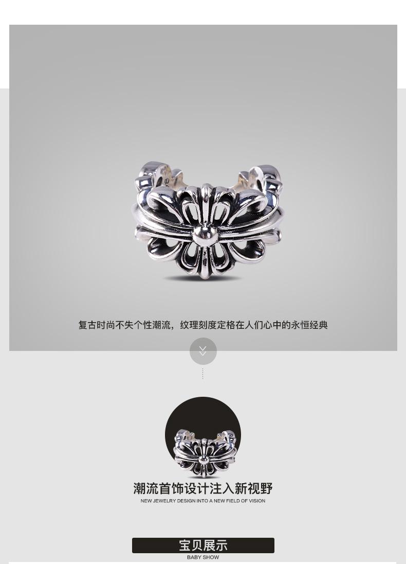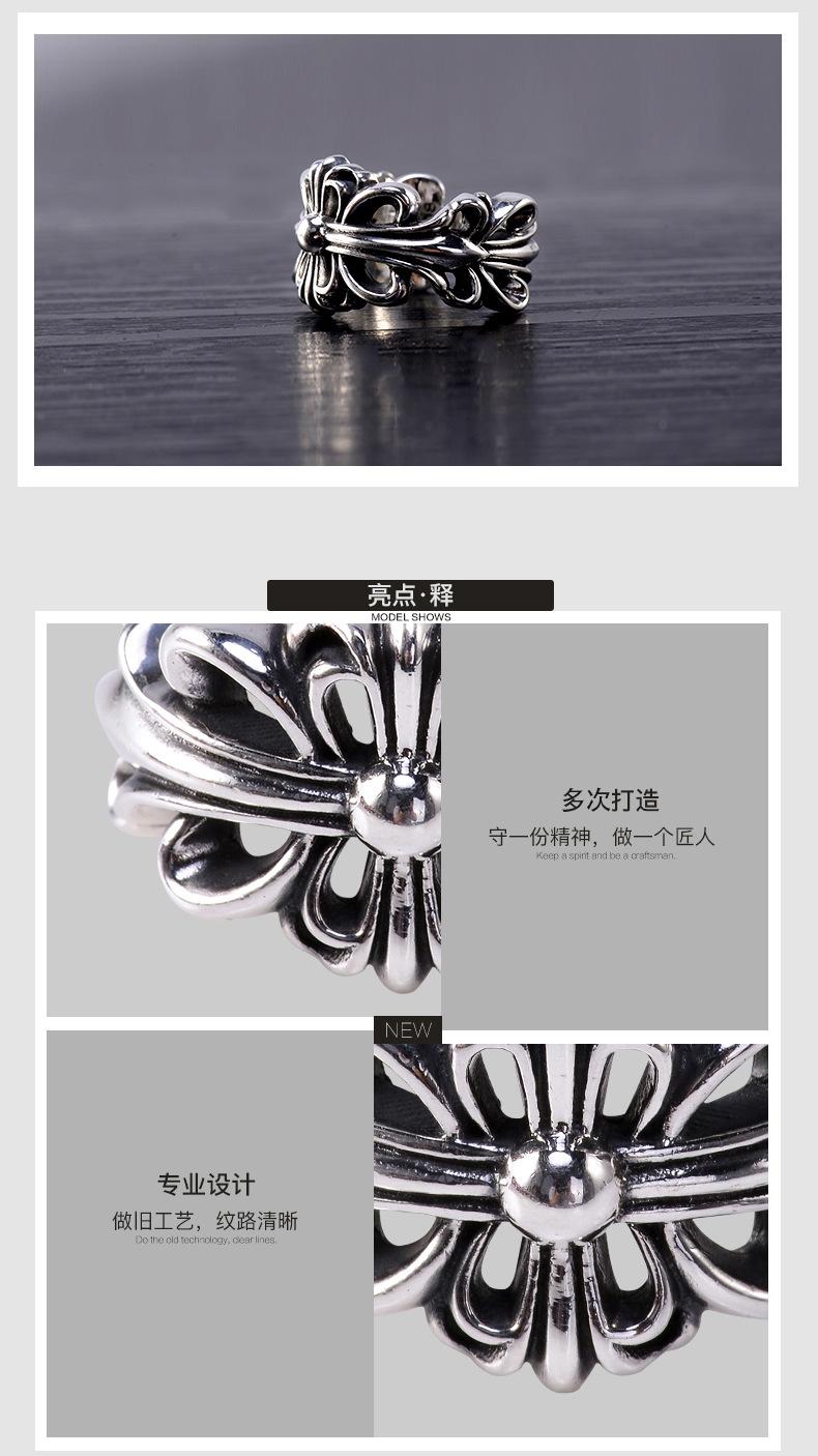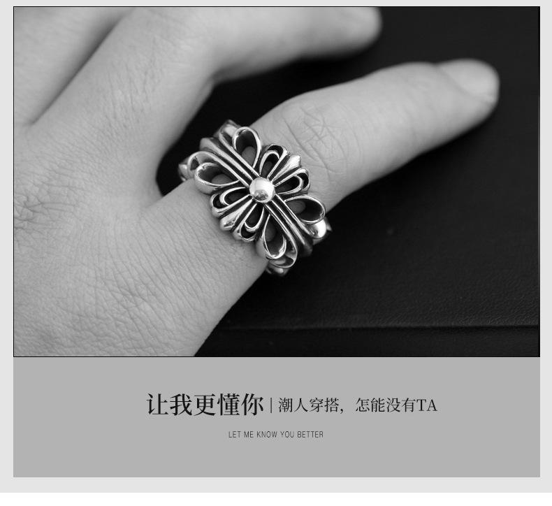 Anillo de cruz de plata tailandesa retro de Europa y Estados Unidos, anillo antiguo de hip hop, anillo de apertura de moda, joyería al por mayor