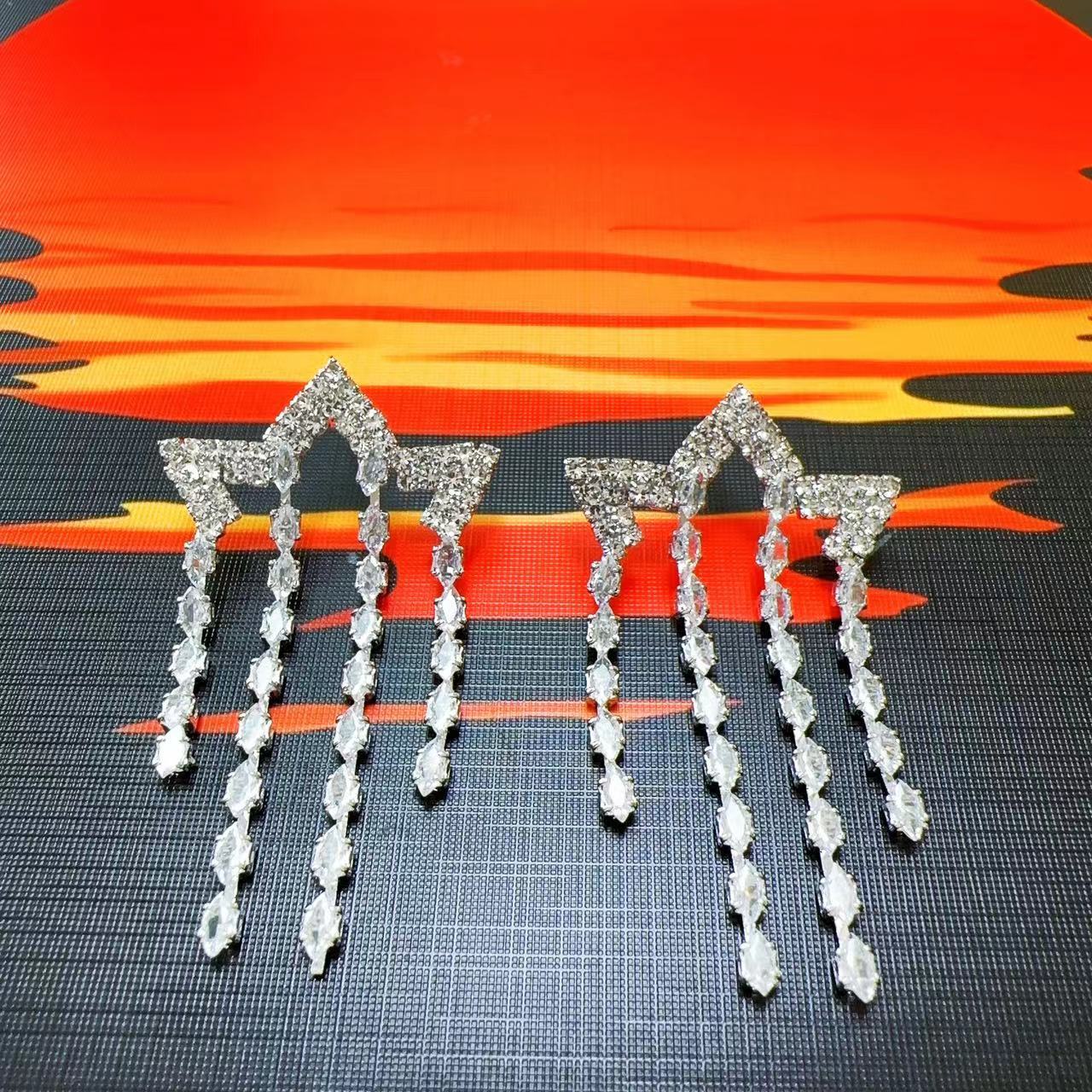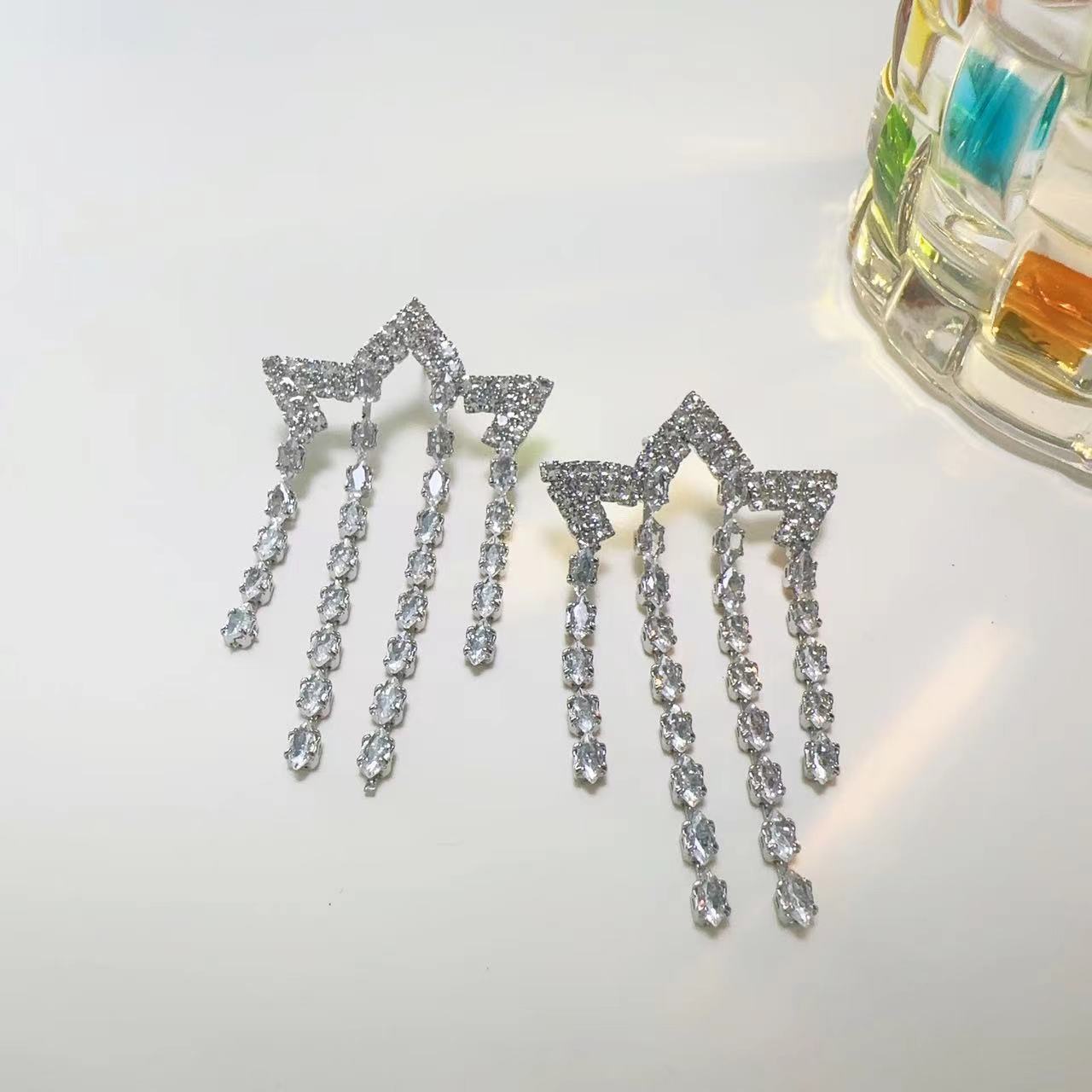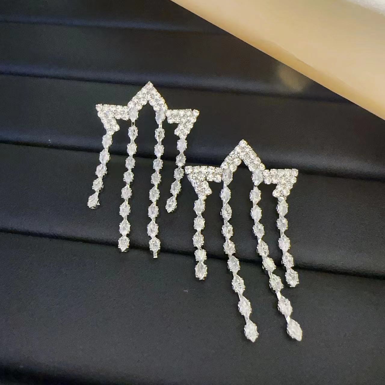 Compra Pendientes de borla de estrella de diamantes de nuevo estilo japonés y coreano para mujer, súper brillantes, exquisitos, elegantes, ligeros, de lujo, de alta gama, de moda, de aguja de plata al por mayor en Joom.pro