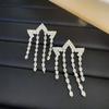 Pendientes de borla de estrella de diamantes de nuevo estilo japonés y coreano para mujer, súper brillantes, exquisitos, elegantes, ligeros, de lujo, de alta gama, de moda, de aguja de plata
