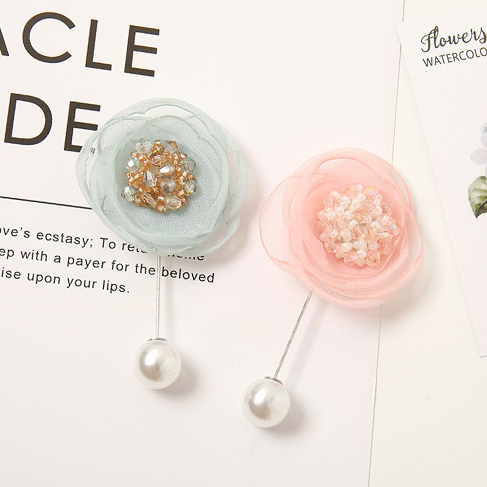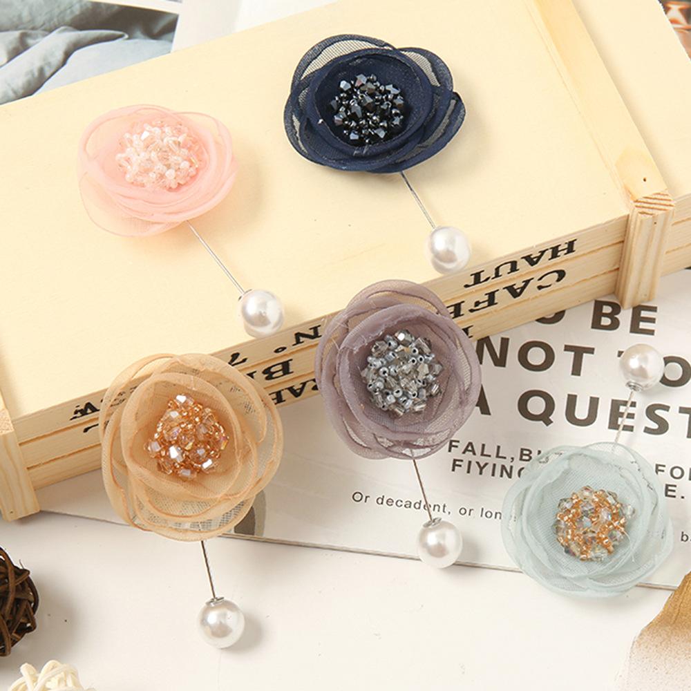 Nuevo broche con hebilla de flor de tela perlada de venta transfronteriza, broche decorativo de joyería de moda para mujer