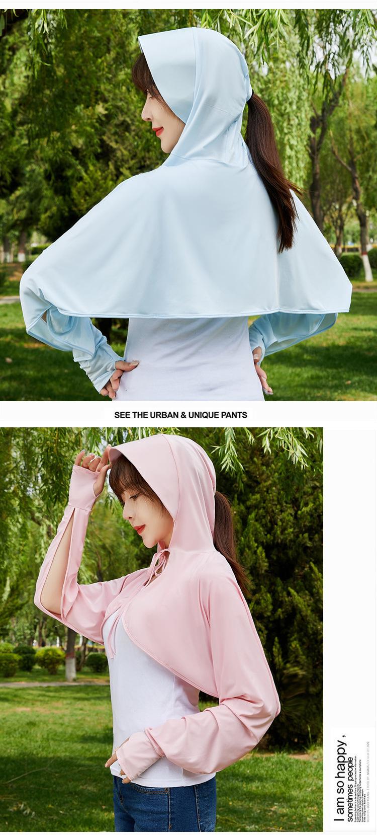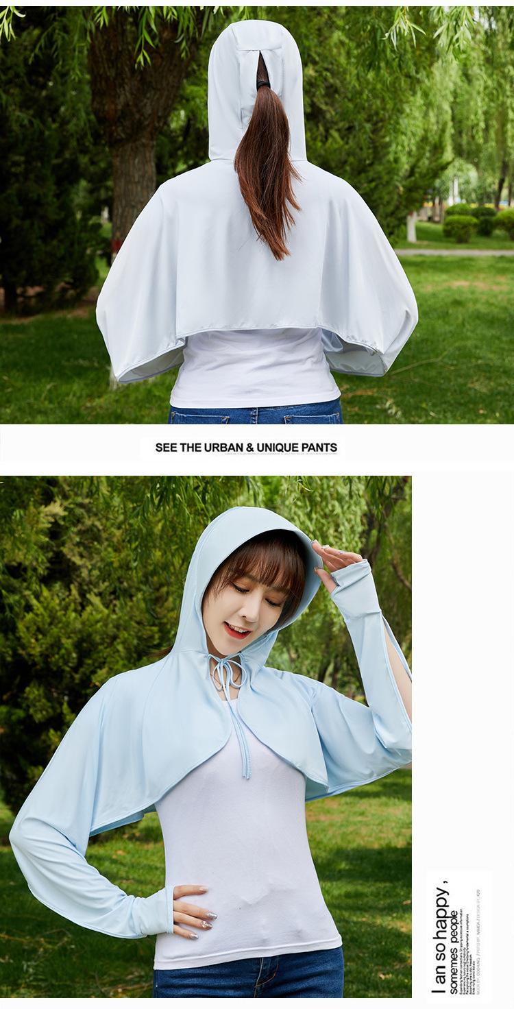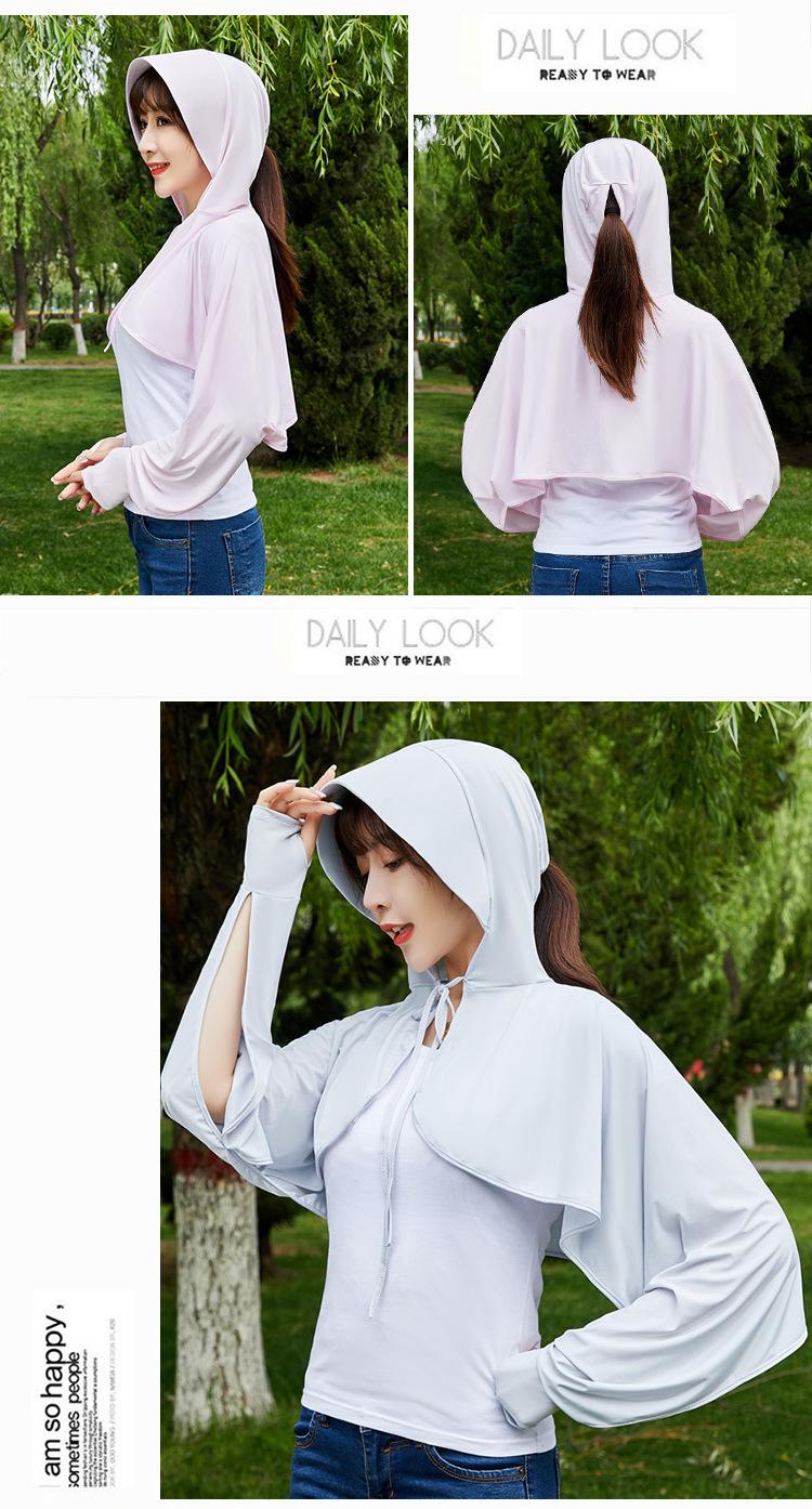 Ropa de Protección Solar de Seda de Hielo de Verano para Mujer, Anti-UV, Ropa de Protección Solar Fina Transpirable de Manga Larga con Capucha con Sensación de Hielo, Ropa de Protección Solar para Exterior