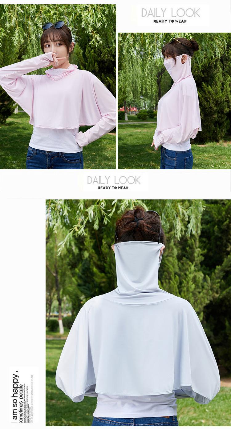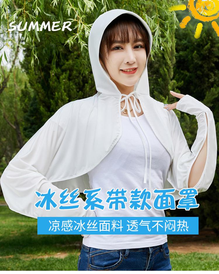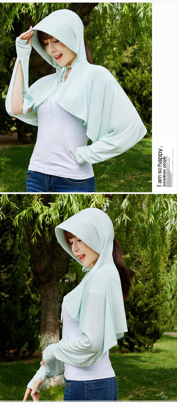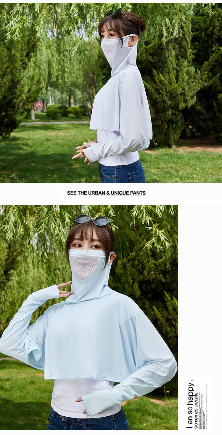 Ropa de Protección Solar de Seda de Hielo de Verano para Mujer, Anti-UV, Ropa de Protección Solar Fina Transpirable de Manga Larga con Capucha con Sensación de Hielo, Ropa de Protección Solar para Exterior
