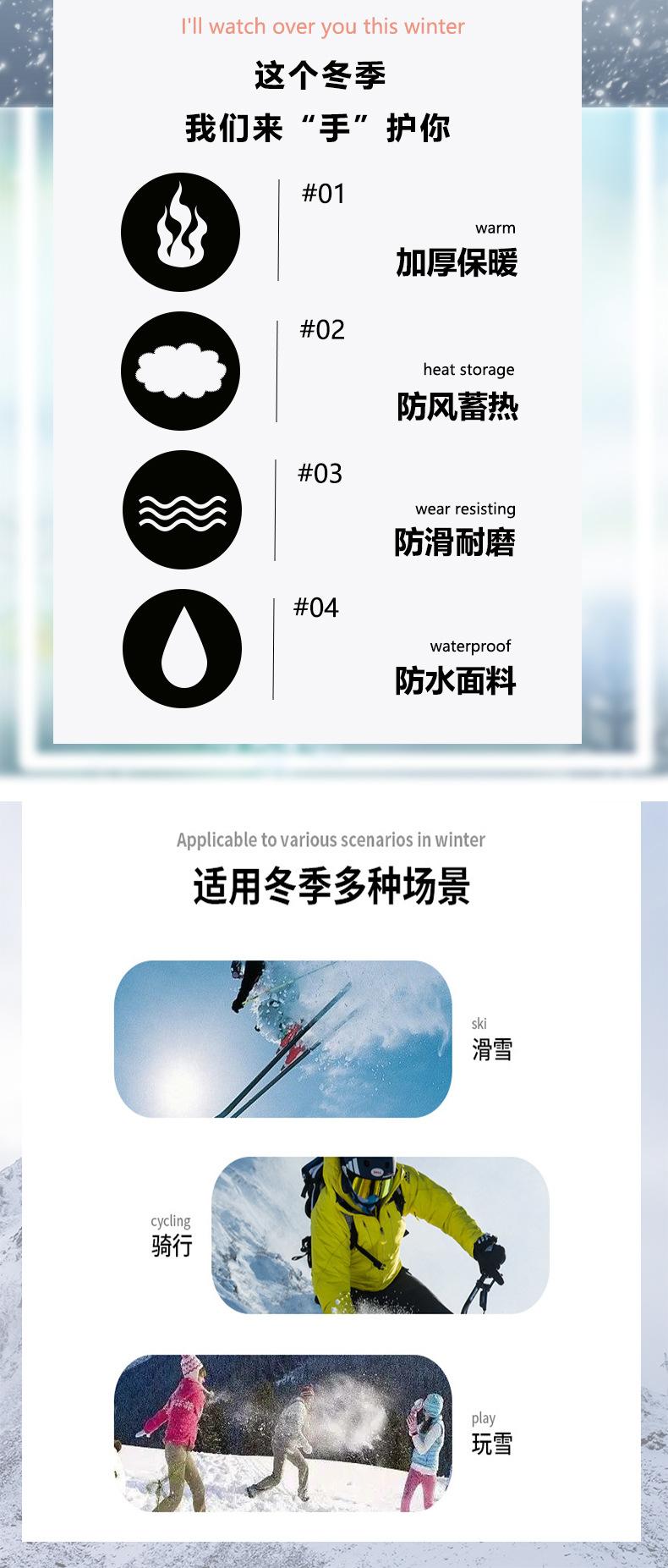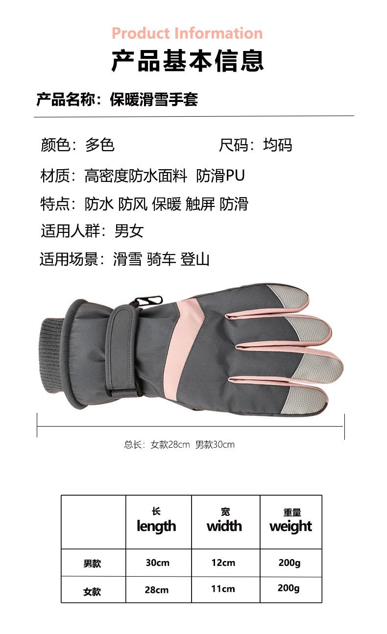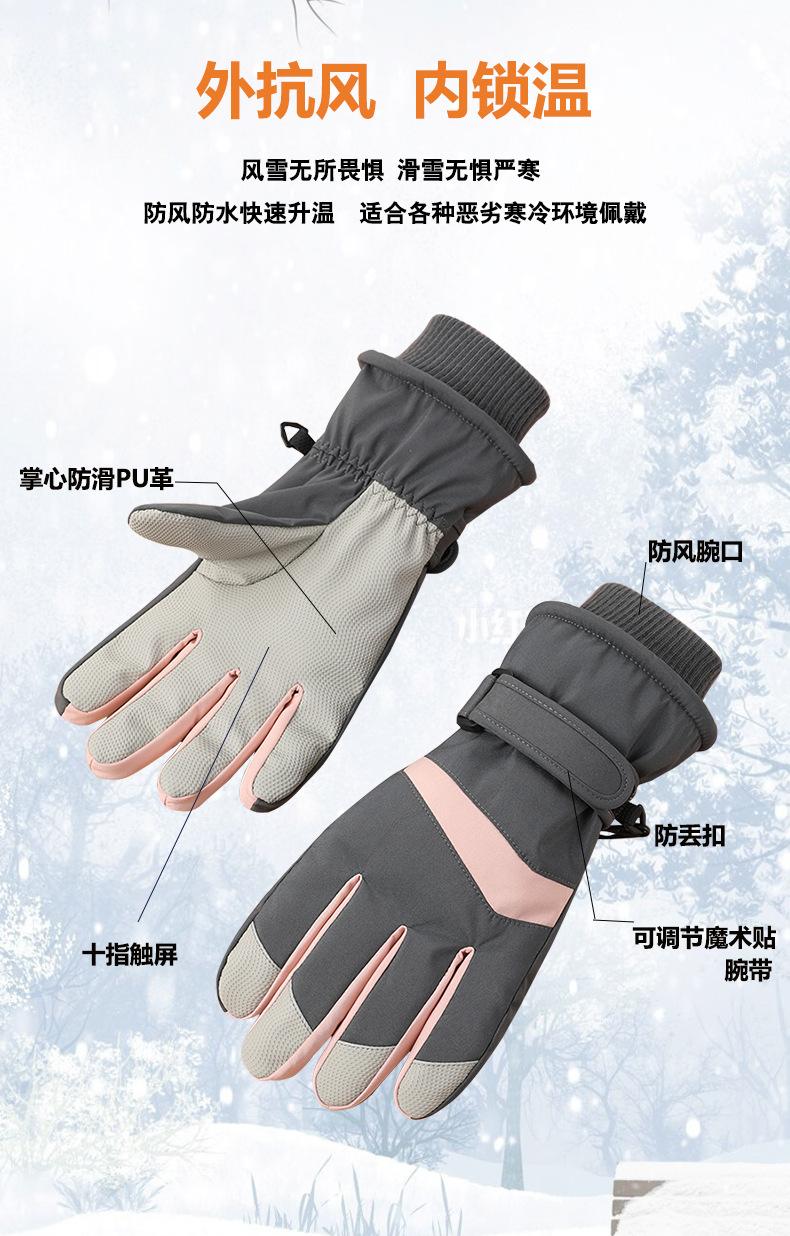 Guantes de esquí de invierno para hombre y mujer, para ciclismo al aire libre, impermeables, con pantalla táctil, cálidos, gruesos con forro polar, a prueba de frío, guantes transfronterizos