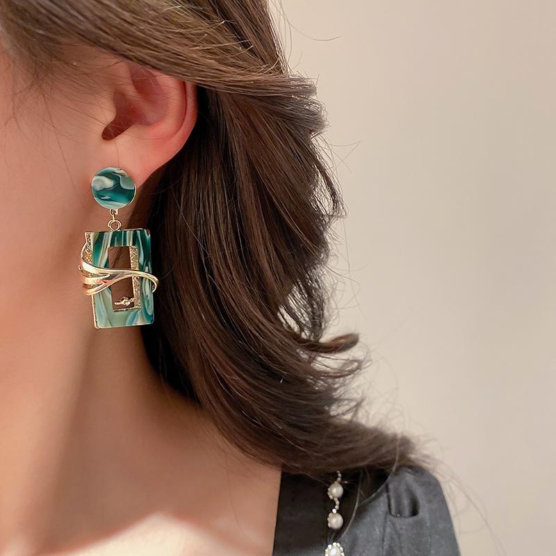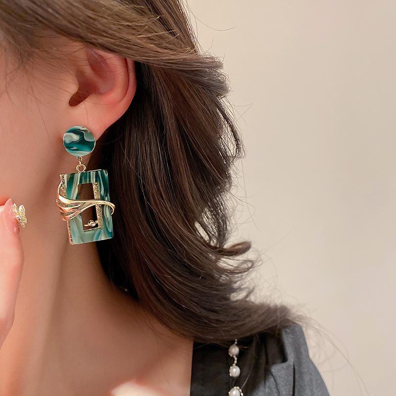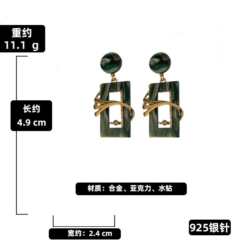 Compra Agujas de Plata Acrílico Verde Retro con Incrustaciones de Pedrería Aretes Cuadrados Geométricos Moda Ins Europea y Americana Aretes Elegantes al Por Mayor al por mayor en Joom.pro