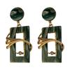 Agujas de Plata Acrílico Verde Retro con Incrustaciones de Pedrería Aretes Cuadrados Geométricos Moda Ins Europea y Americana Aretes Elegantes al Por Mayor