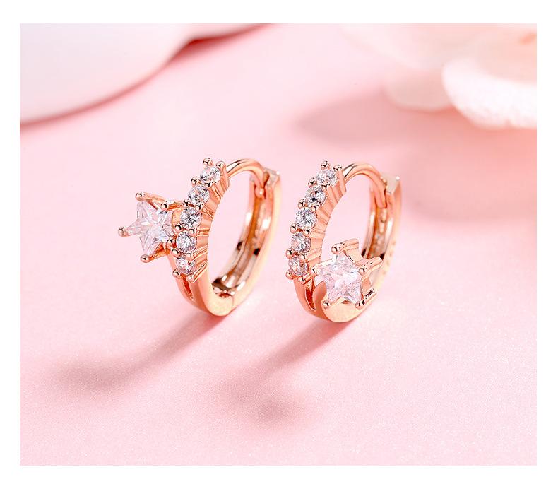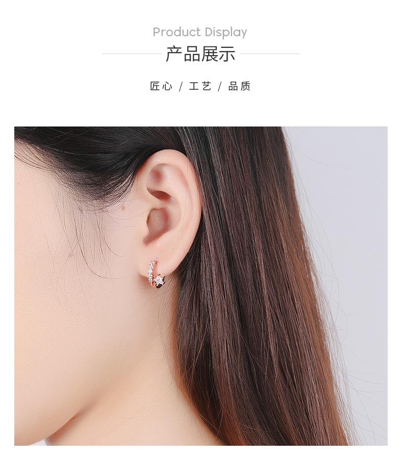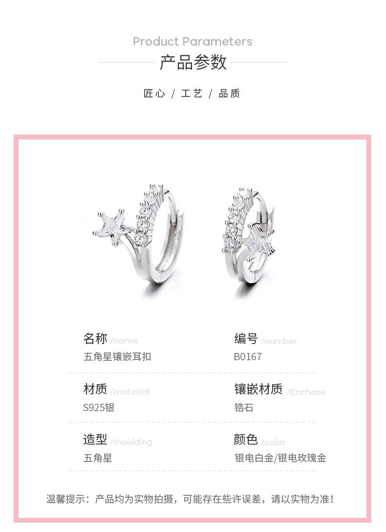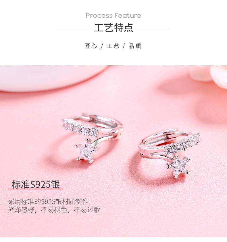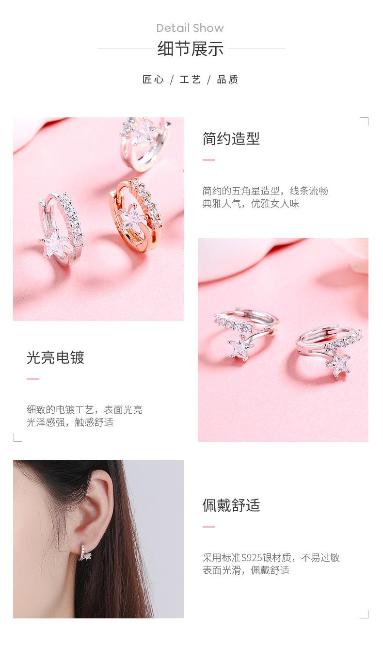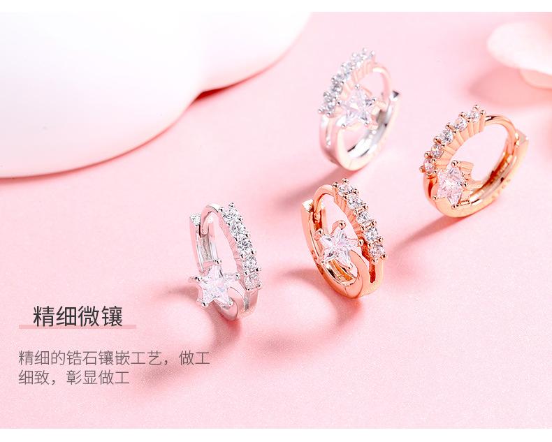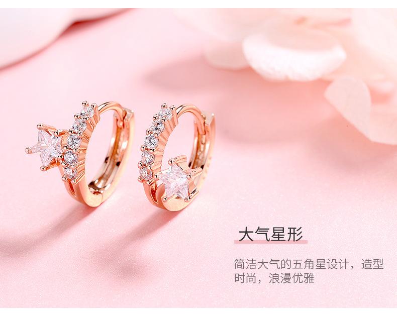 Pendientes de plata de ley sencillos para mujer, elegantes, combinables con todo, estilo coreano, de alta calidad, ligeros, de lujo, estilo ins, con circonitas en forma de estrella de cinco puntas.
