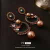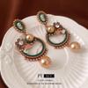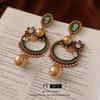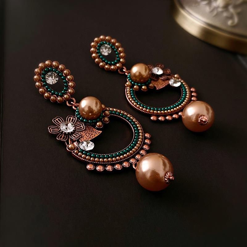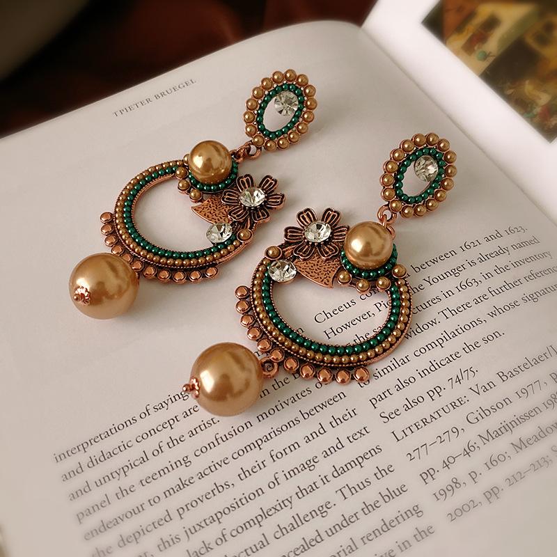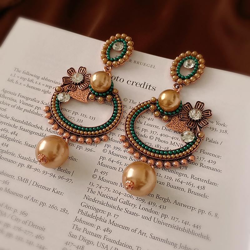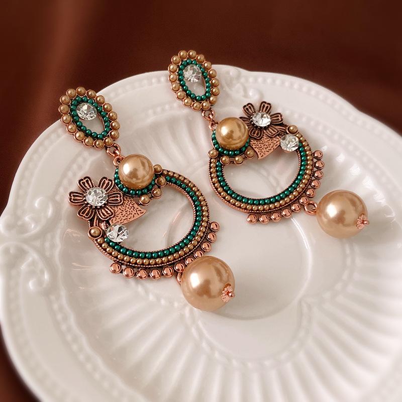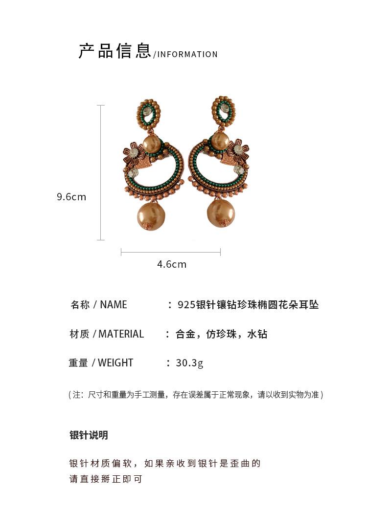 Pendientes de plata con forma de flor ovalada y perla antigua de estilo cortesano, con diseño de nicho, con personalidad y moda, al por mayor.