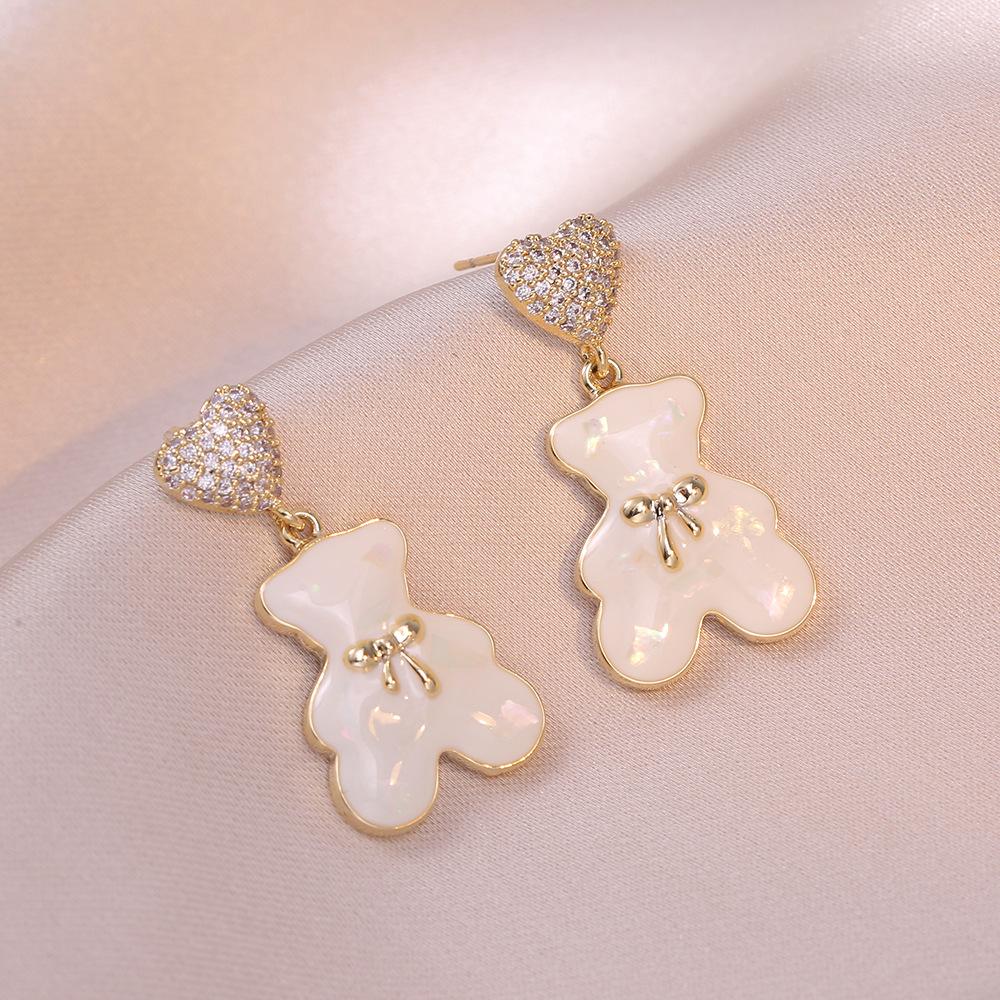 Compra Pendientes de plata 925 con forma de oso para mujer, elegantes y a la moda, de Corea del Sur, con diseño de celebridad de Internet, sencillos y personalizados. al por mayor en Joom.pro