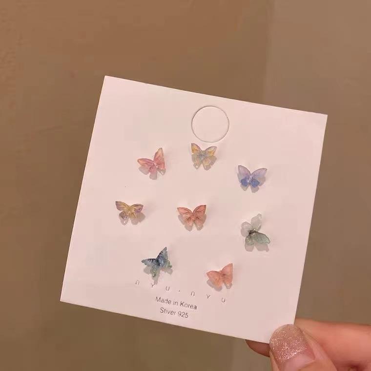 Pendientes pequeños de mariposa con aguja de plata S925, 2021, nuevos pendientes de la serie Macaron, pendientes sencillos y súper elegantes.