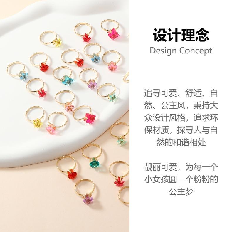Anillo de imitación de piedras preciosas transfronterizas para niños, joyería de princesa, joyería linda para niñas, joyería de mano para niñas, venta al por mayor