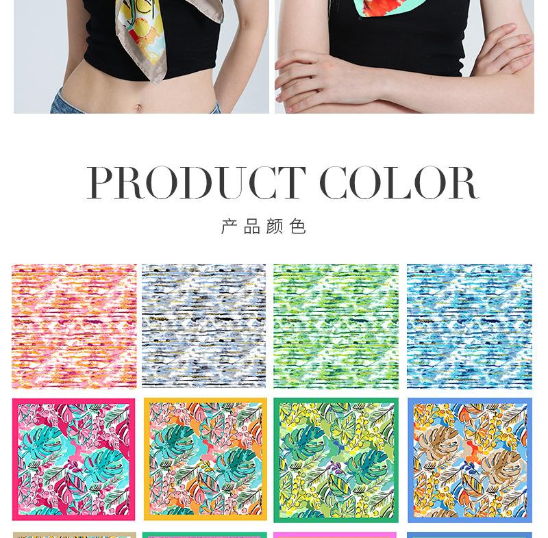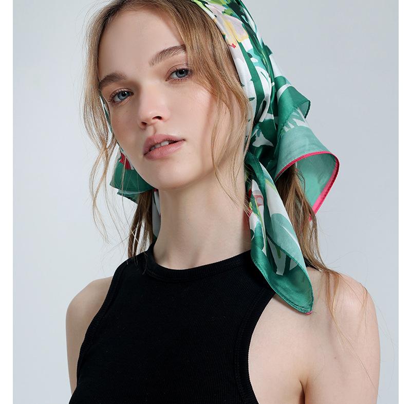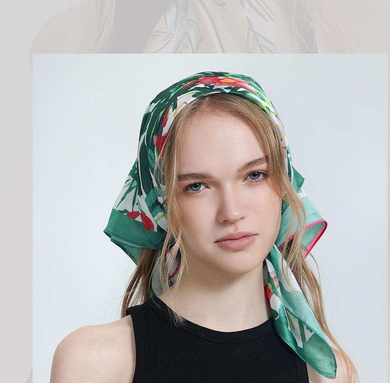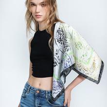 Bufanda europea y americana de seda versátil, decorativa, cuadrada, de 70 cm, con estampado de alta calidad.