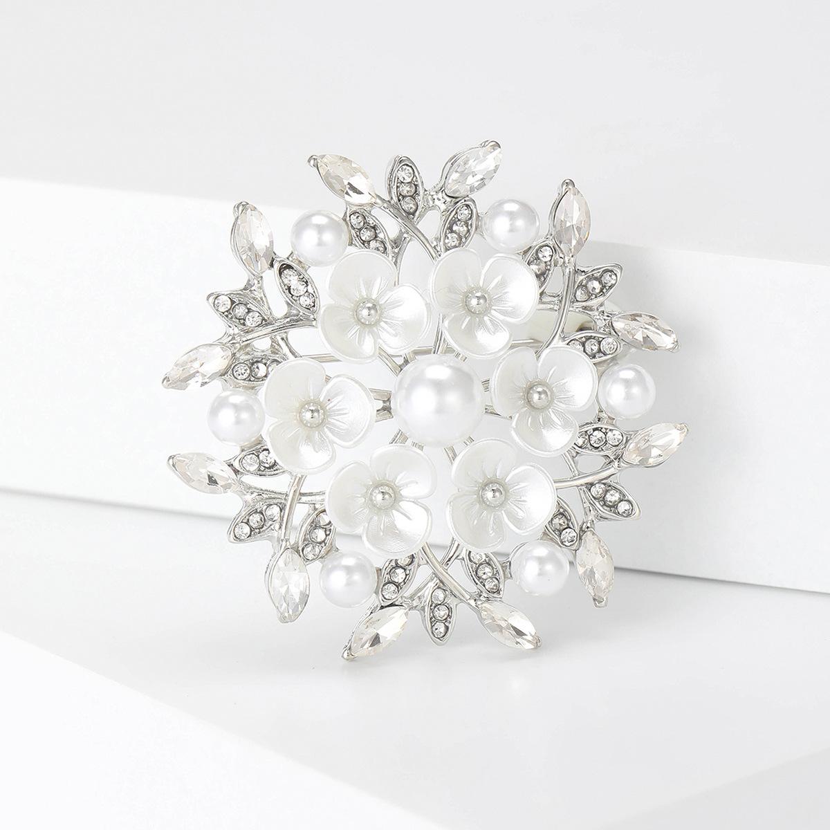 Nuevo broche de flor de perla de moda, alfiler de planta de diamantes de imitación de alta gama, accesorios populares de temperamento, fabricantes al por mayor