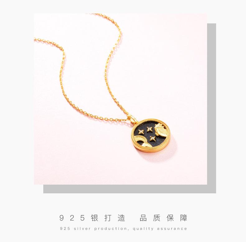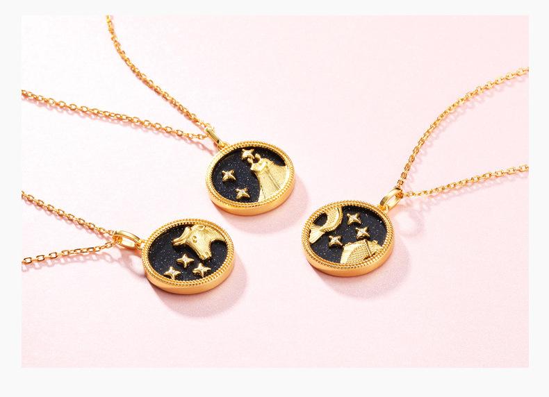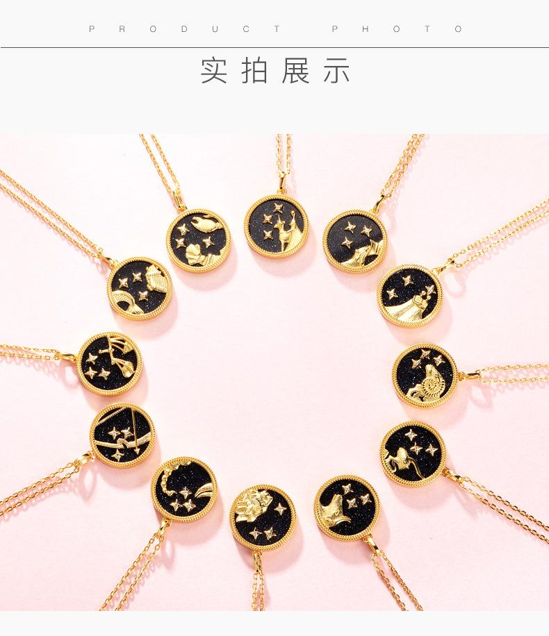 Collar de doce constelaciones de plata esterlina S925, chapado en oro, arenas moradas, estilo coreano, cadena de clavícula para hombres y mujeres, venta al por mayor