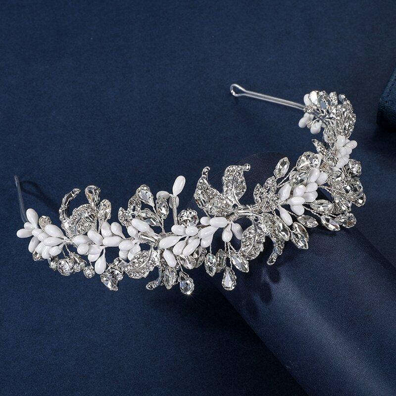 Diadema con perlas y diamantes de imitación transfronterizos para niñas, accesorios para el cabello hanfu de estilo antiguo, tocado de novia hecho a mano, diadema de boda al por mayor