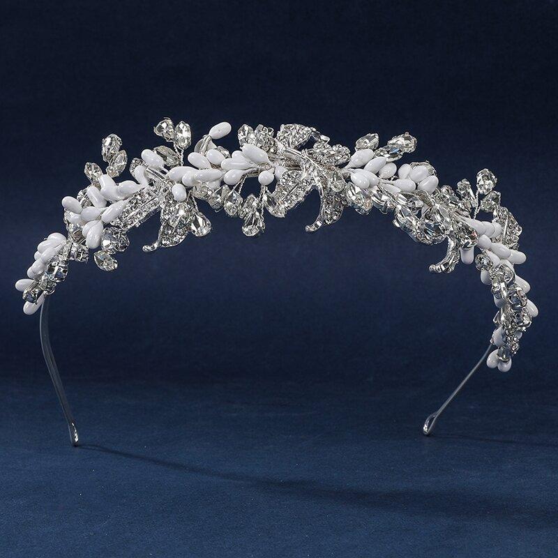 Tocado de novia con borde cruzado, peine con inserción de diamantes de imitación de perla, peine con inserción invertida hecho a mano, accesorios para el cabello con foto de estilo antiguo, peineta de cristal