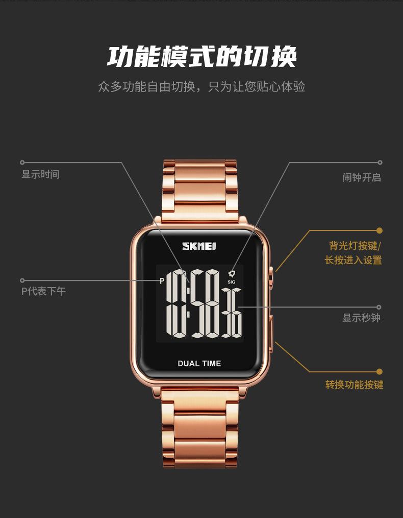Compra Reloj deportivo multifunción Skmei Skmei para hombre, con correa de acero, resistente al agua, electrónico, de negocios, con esfera cuadrada al por mayor en Joom.pro
