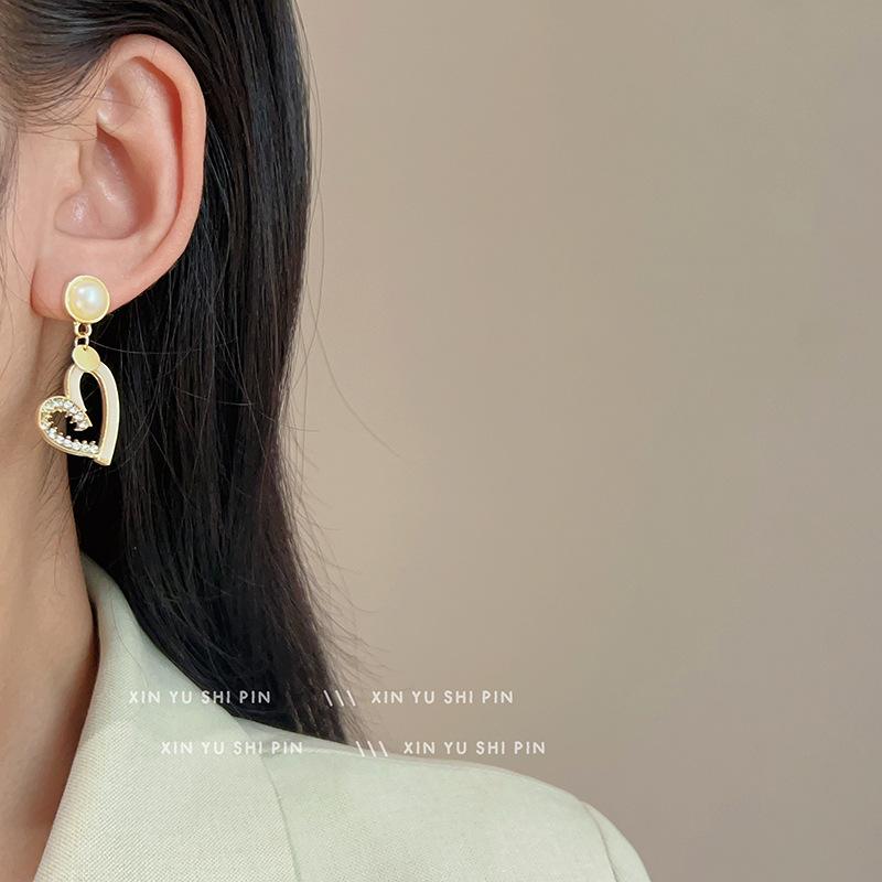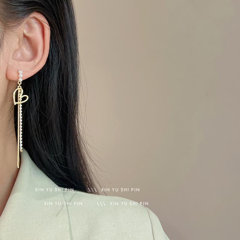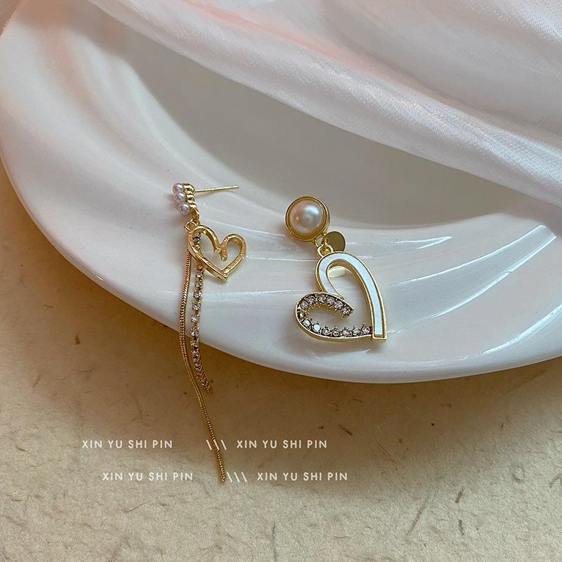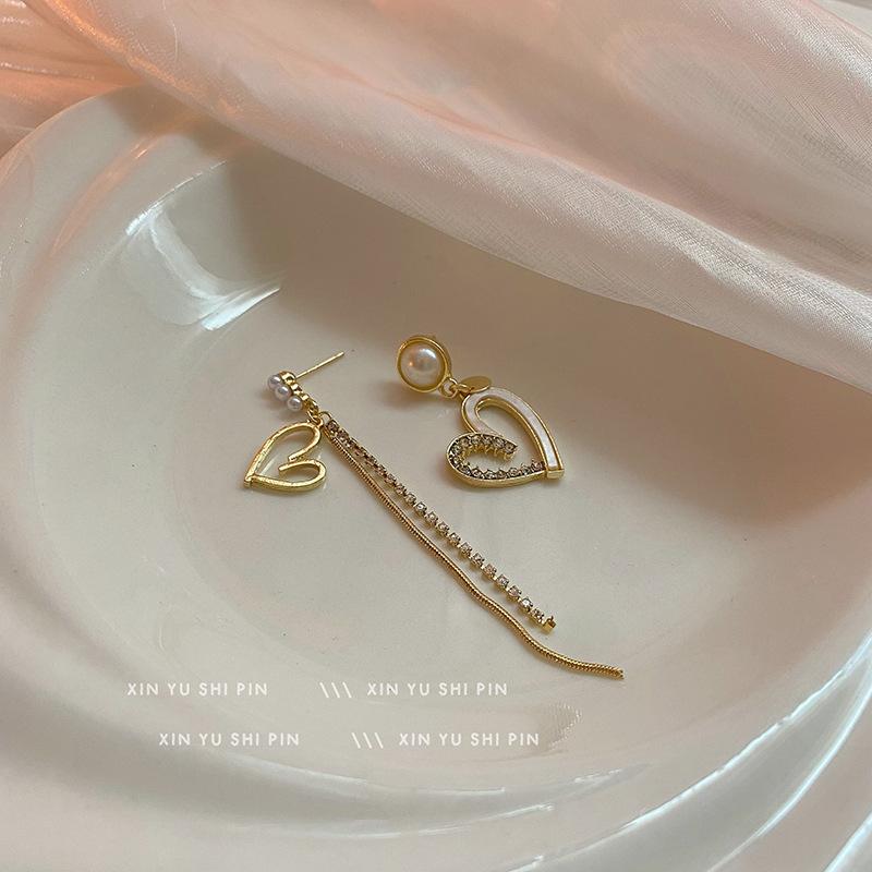 Exquisitos pendientes asimétricos con borlas de perlas de imitación y amor, modernos, ligeros, de lujo y de gran sentido.