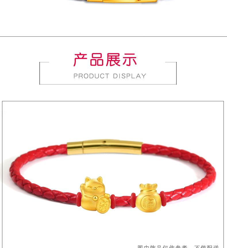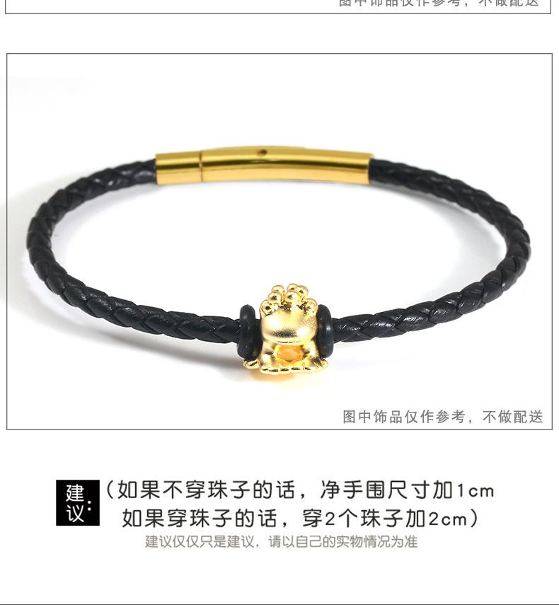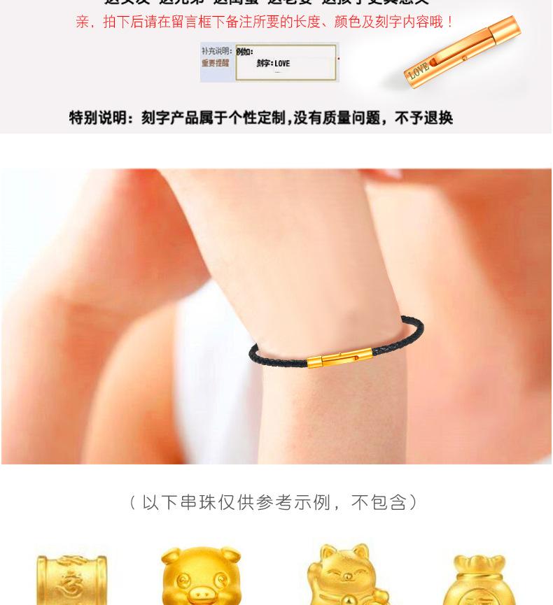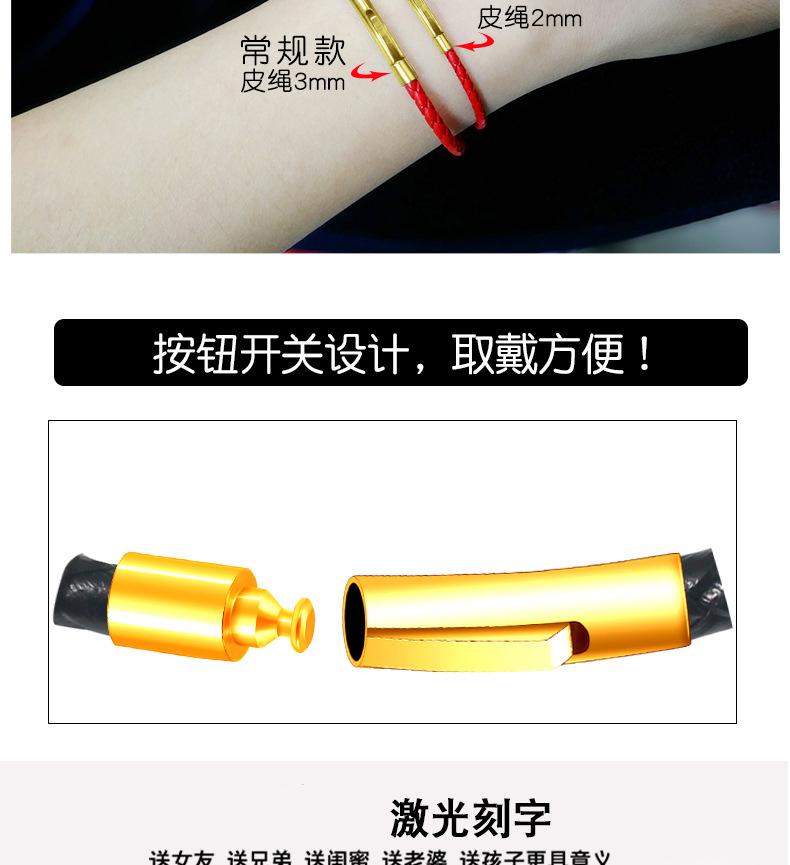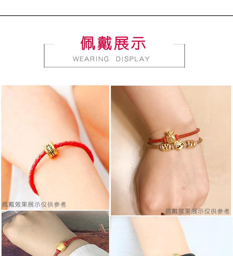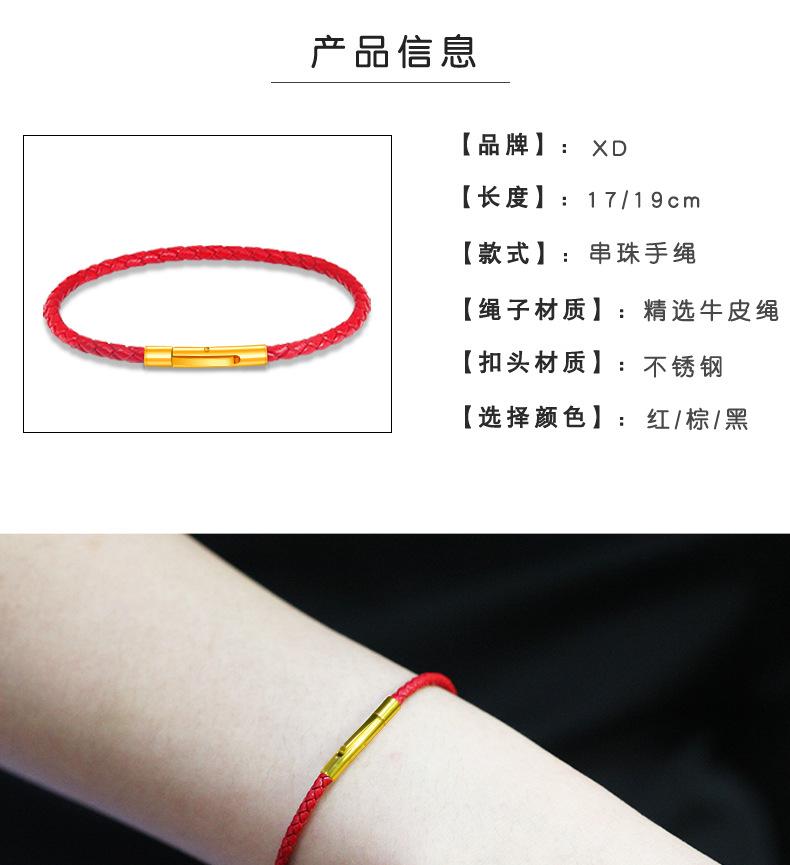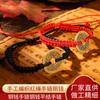 Pulsera de cuerda roja de cuero tejido DIY para hombres y mujeres, con cuentas de oro duro 3D, cuentas de la suerte, año de nacimiento, pulsera para pareja