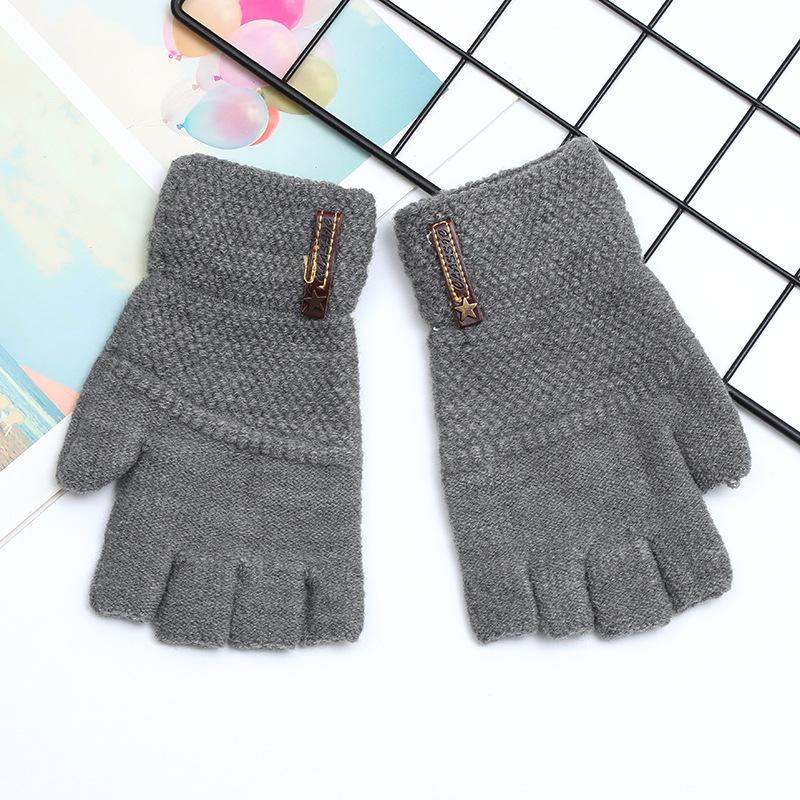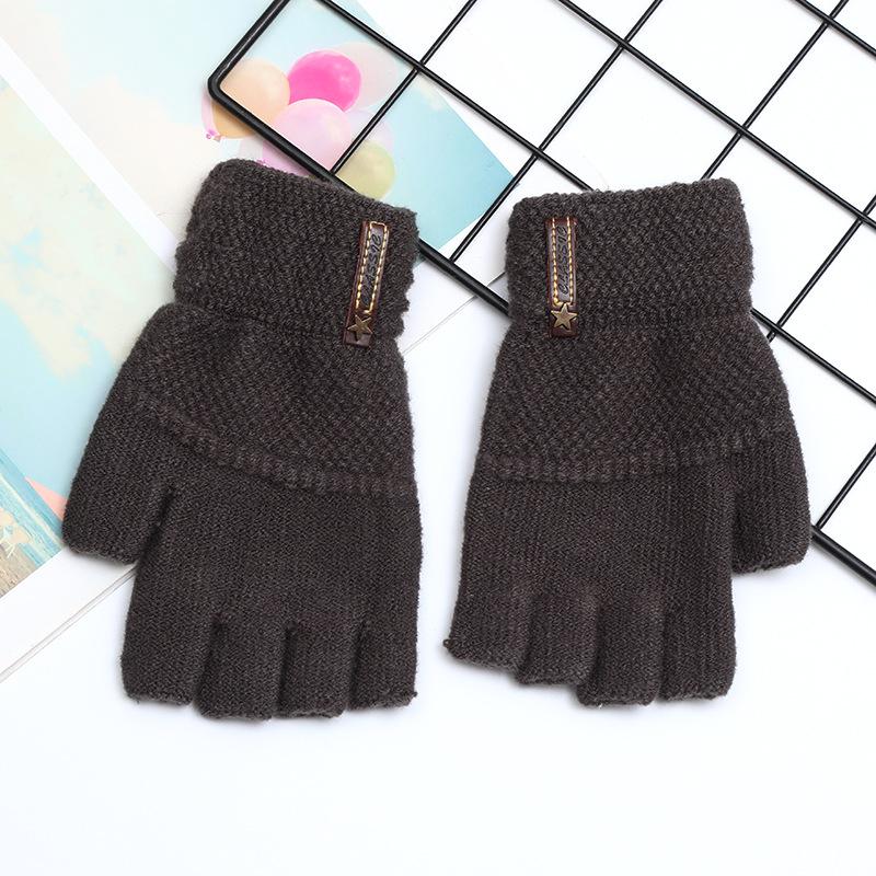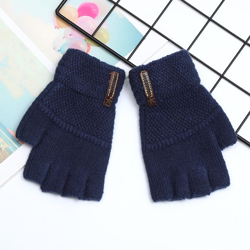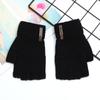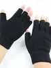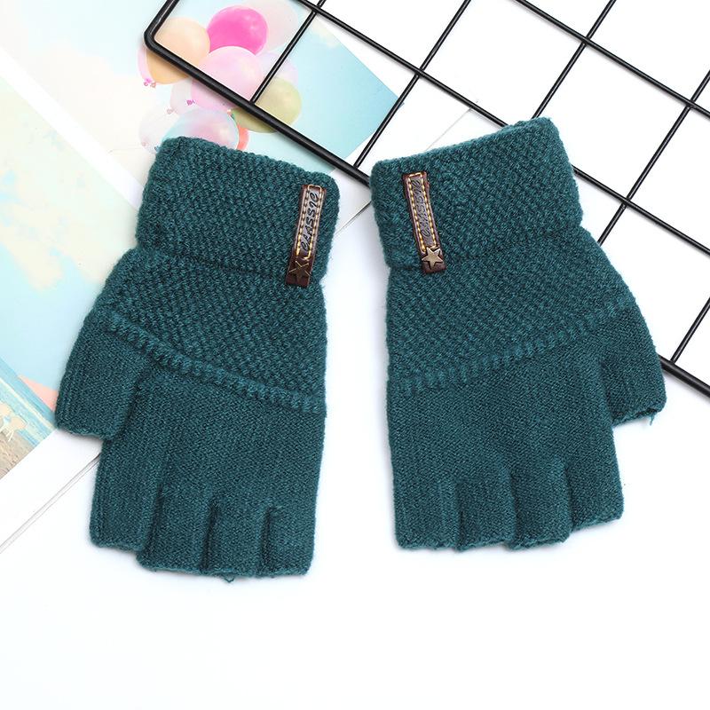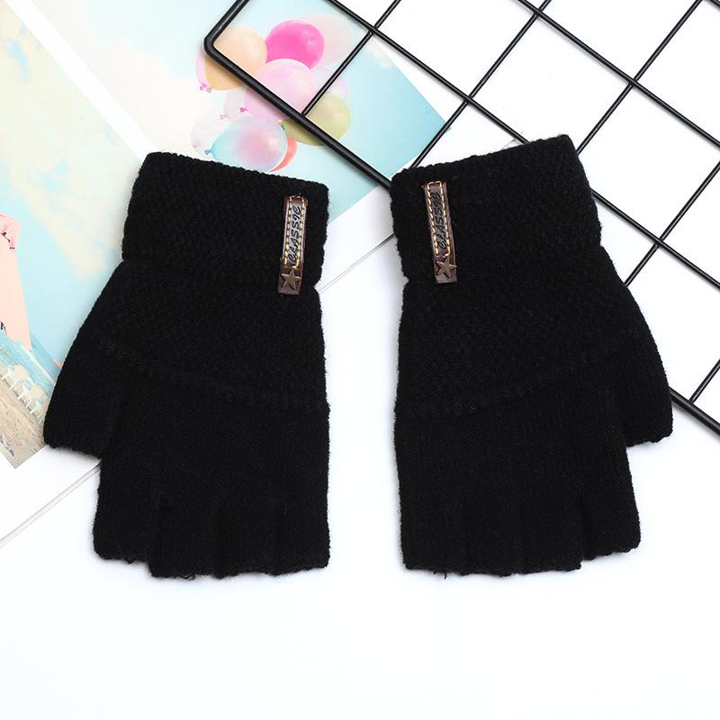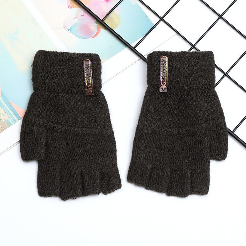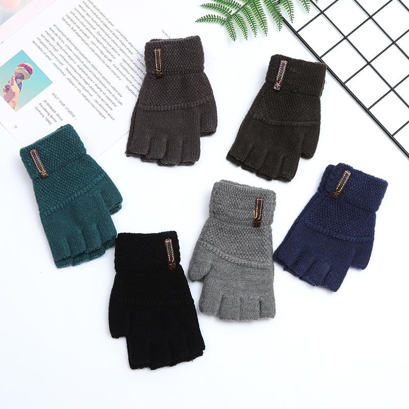 Guantes de hombre nuevos de otoño e invierno con medio dedo y tapa abatible, de punto de cachemira, cálidos y resistentes al frío, de jacquard.