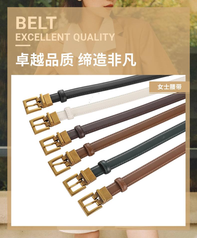 Nuevo Cinturón casual para mujer con hebilla de pin, cinturón de cuero de capa superior para mujer, venta al por mayor, combina con todo, cinturón de cuero decorativo de mezclilla para mujer