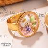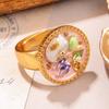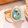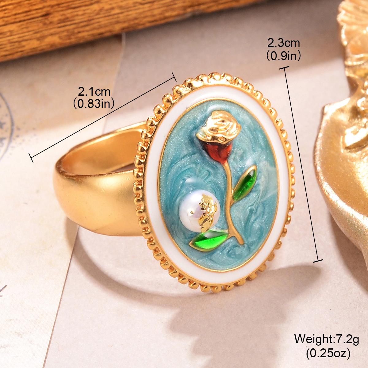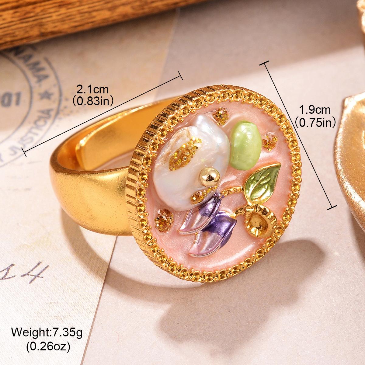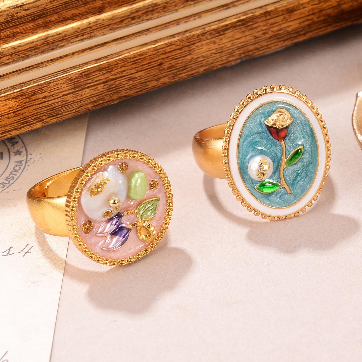 Anillo de perla natural, anillo de dedo con flor, serie de pintura al óleo retro de alto sentido, 2024, nueva joyería pequeña de verano al por mayor