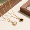 Collar con letras de acero inoxidable de 18 quilates con concha redonda, estilo transfronterizo europeo y americano, colgante con letras de acero de titanio para mujer.