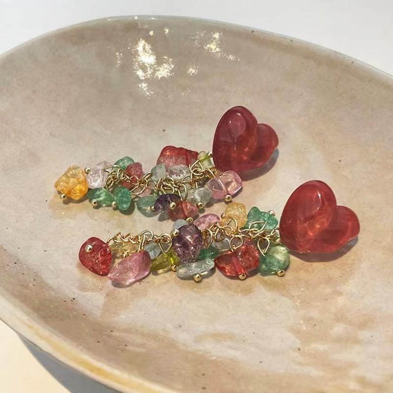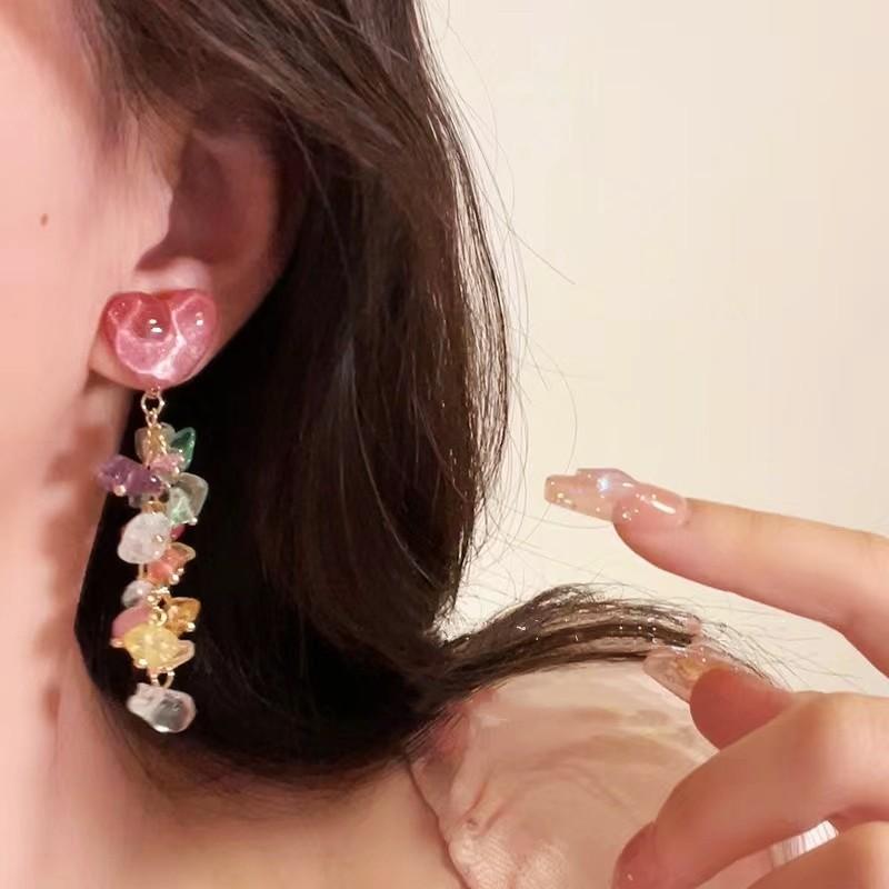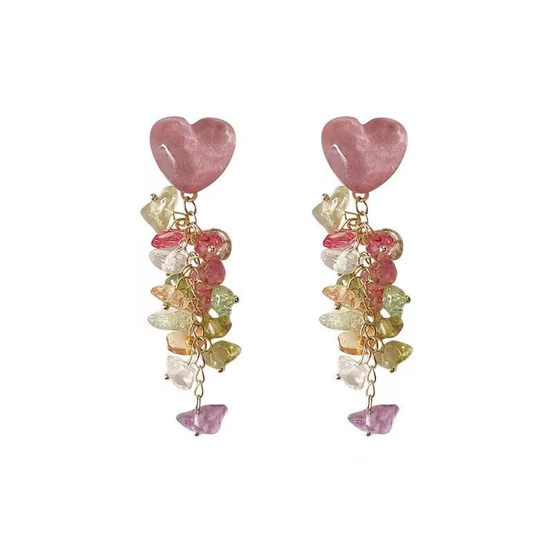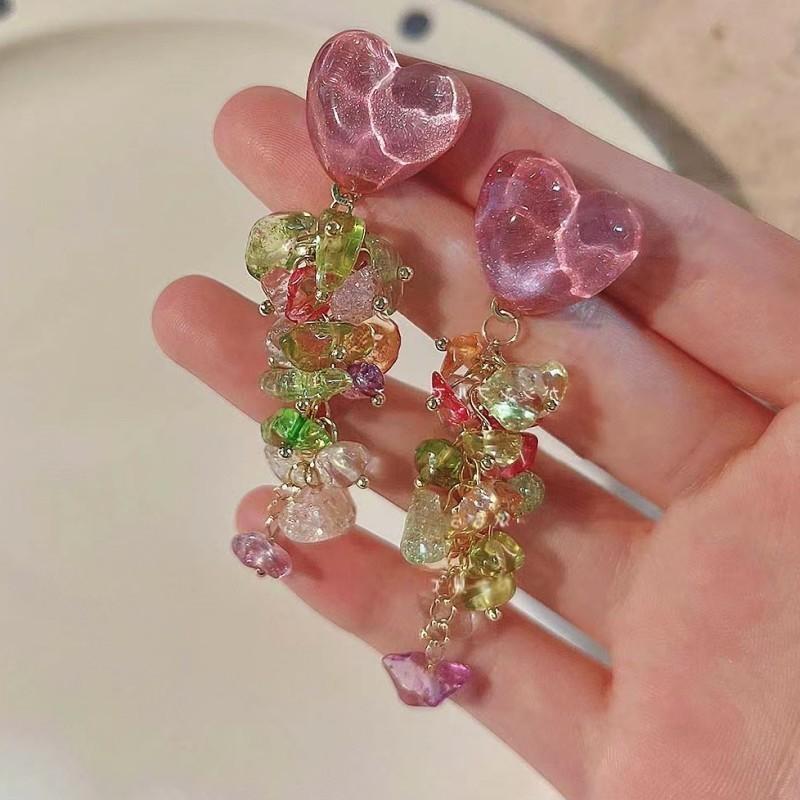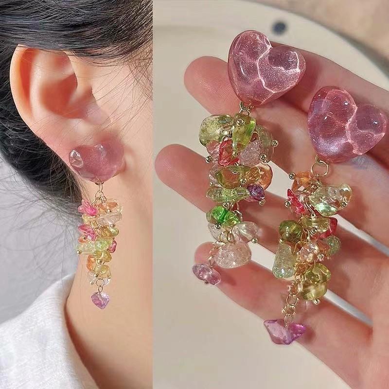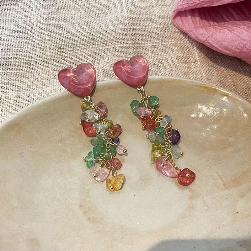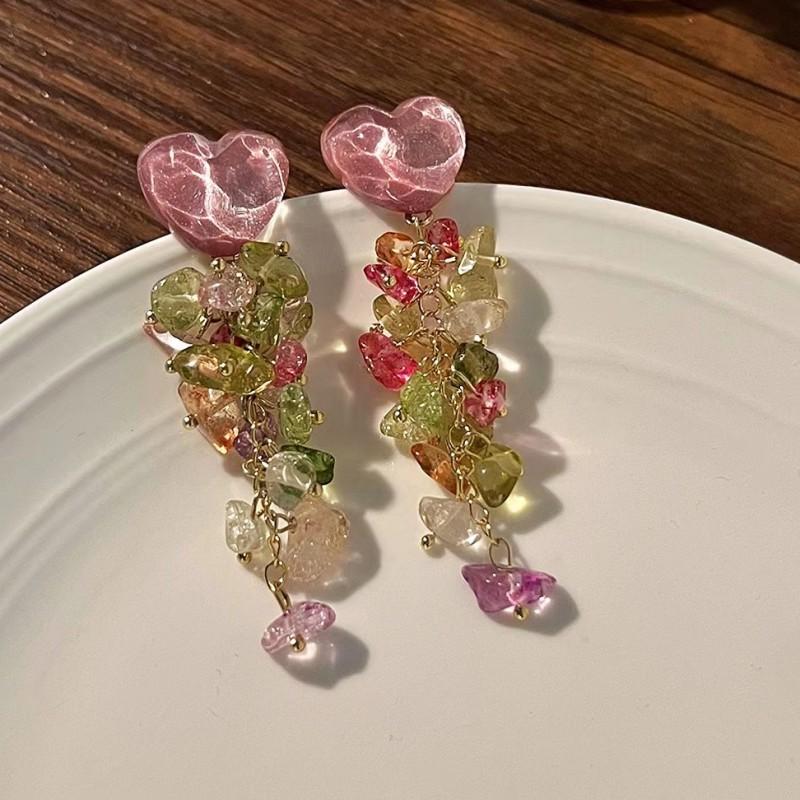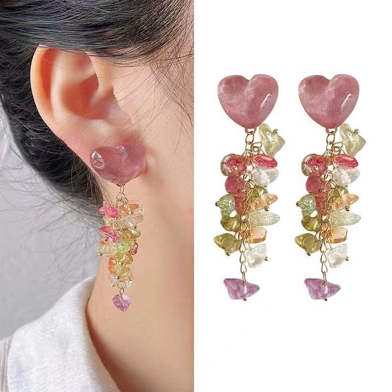 Pendientes Largos de Borlas de Cristal de Color Dulce y Lindo Amor Sentido Avanzado Nicho Pendientes Elegantes Nuevos Pendientes de Moda