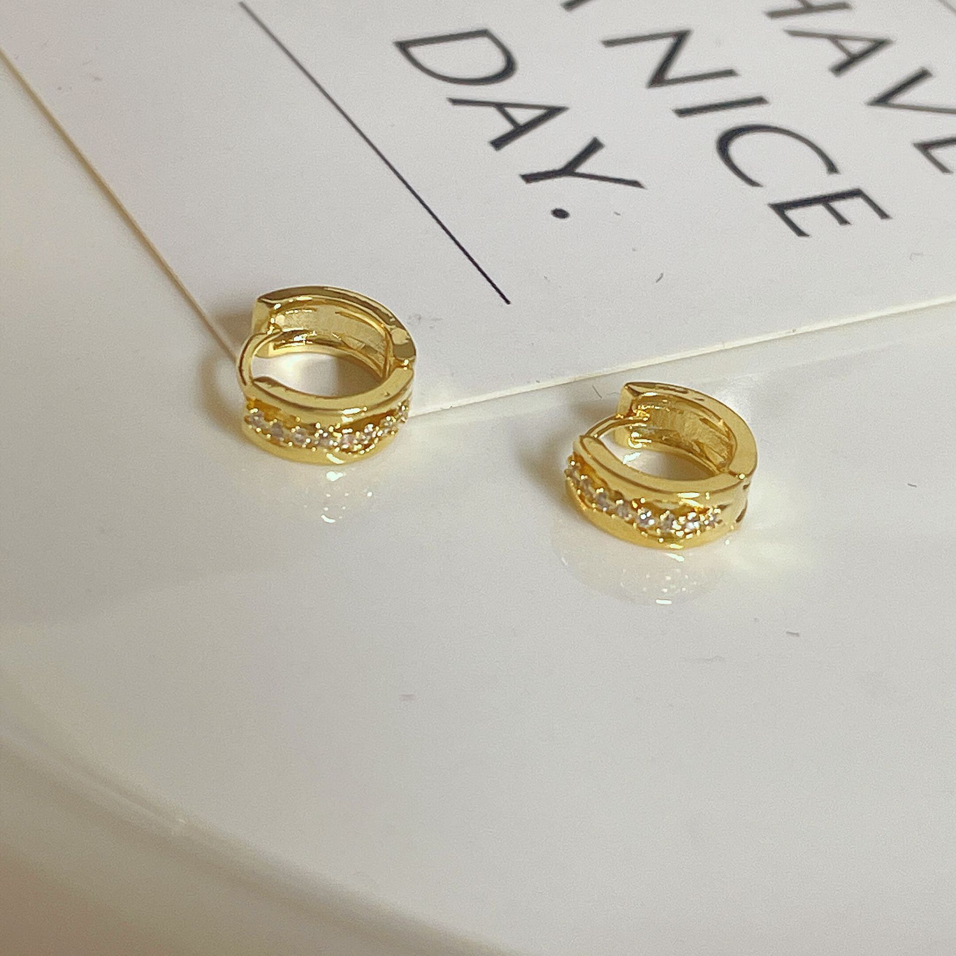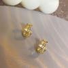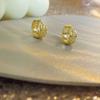 Pendientes pequeños y exquisitos con microincrustaciones de oro retro, hebilla redonda para la oreja, temperamento ligero, de lujo, de alta gama, con diseño de nicho
