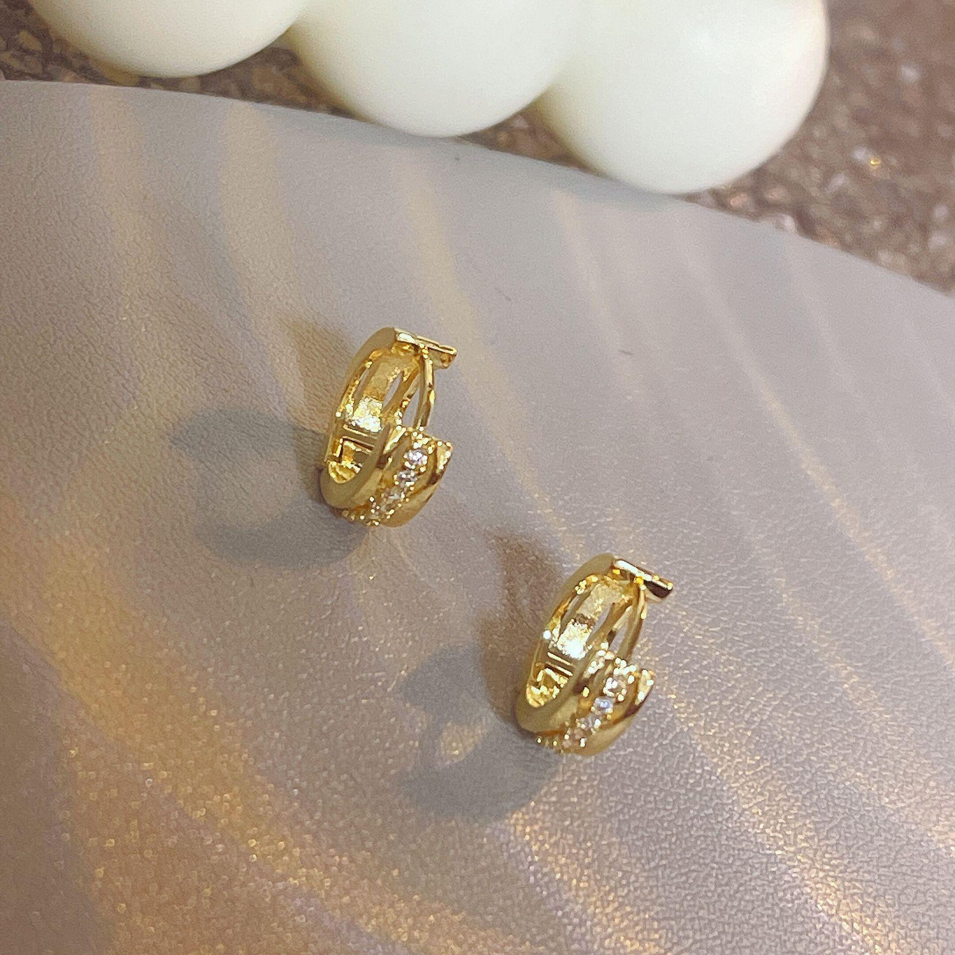 Compra Pendientes pequeños y exquisitos con microincrustaciones de oro retro, hebilla redonda para la oreja, temperamento ligero, de lujo, de alta gama, con diseño de nicho al por mayor en Joom.pro