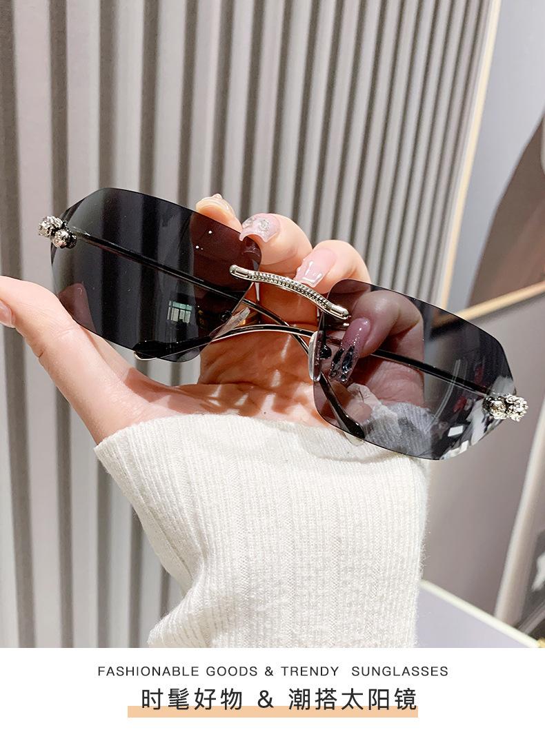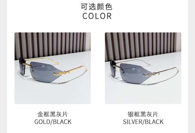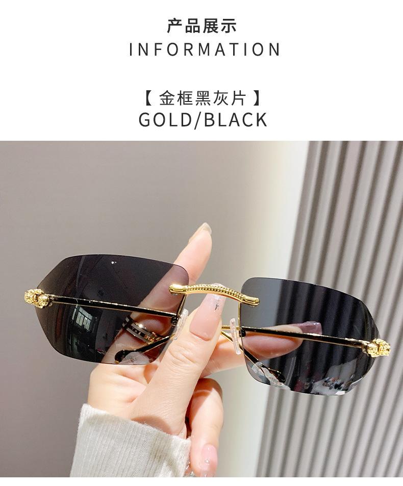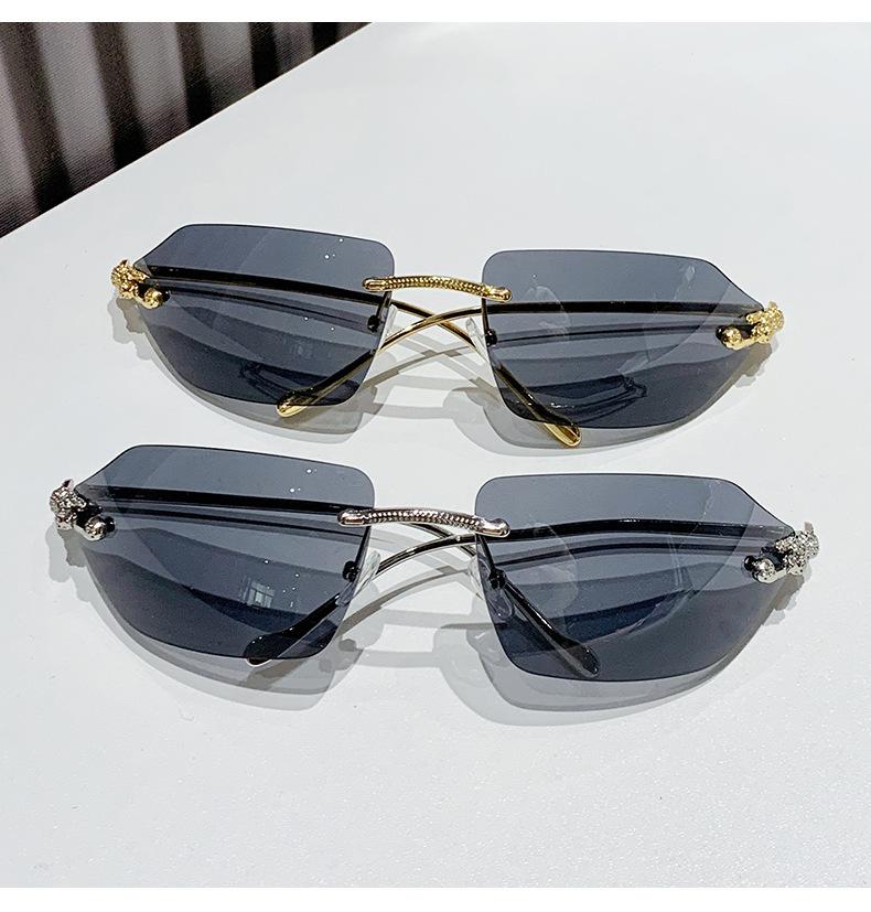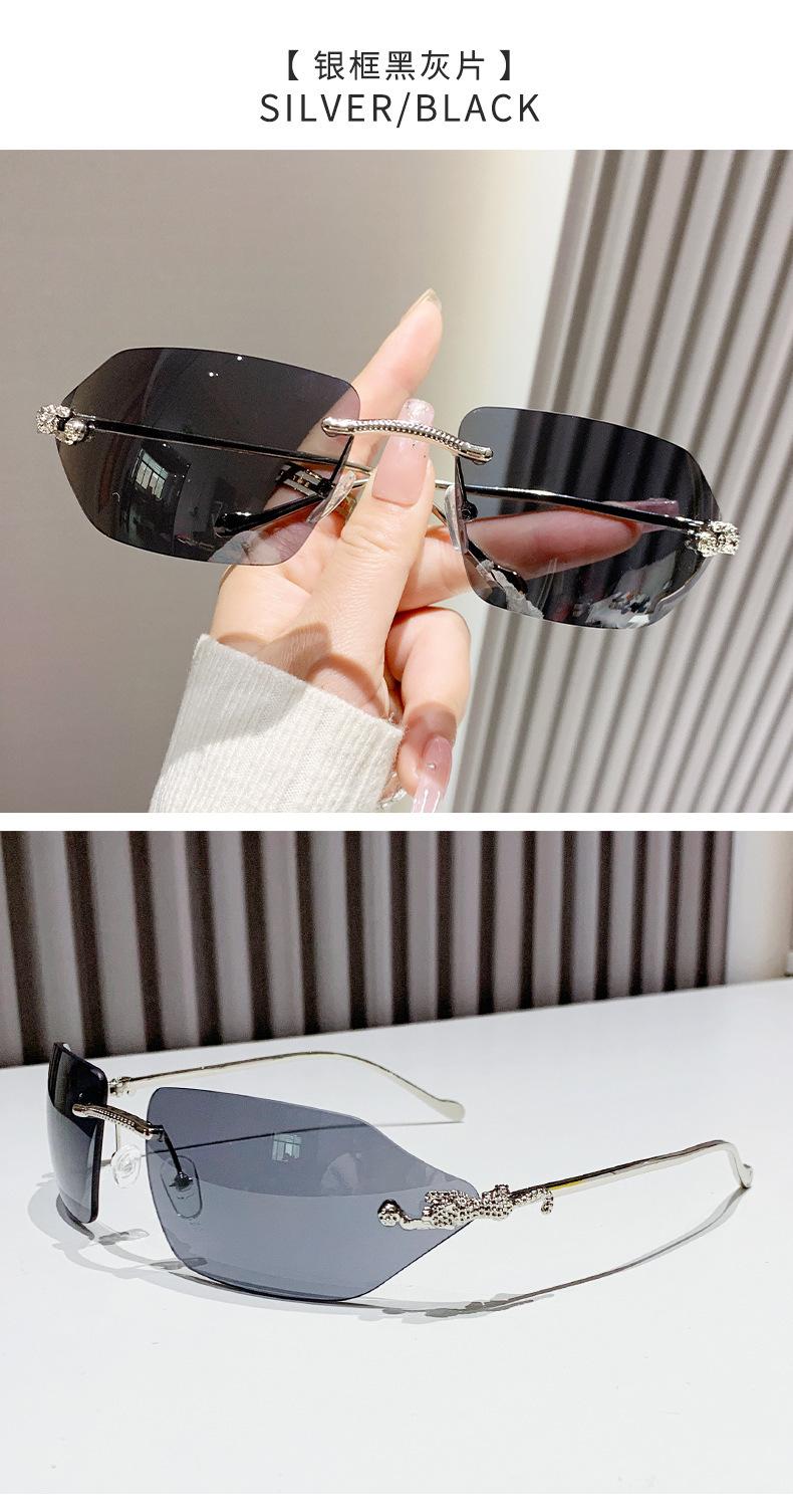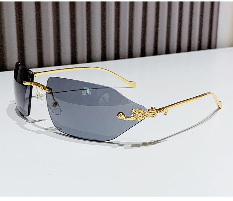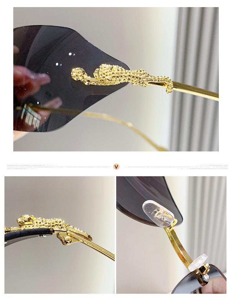 Moda europea y americana nuevas gafas de sol cat eye sin montura con adornos metal de comercio exterior cabeza de leopardo moda gafas de sol cool chic