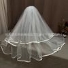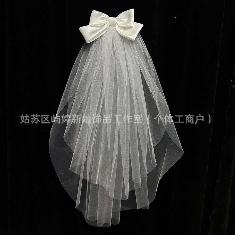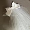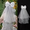 Velo de Cumpleaños de Princesa Lazo Novia Francés Propuesta Registro de Matrimonio Sencillo Corto Doble Capa Tocado Boda