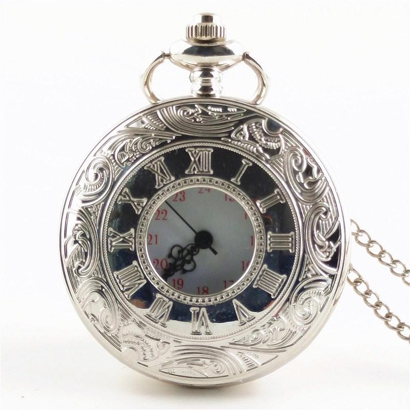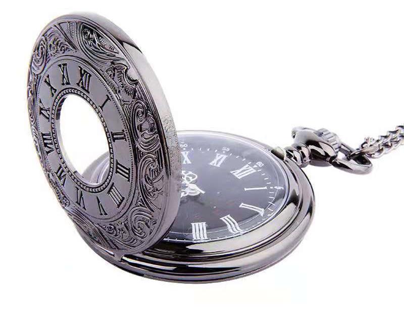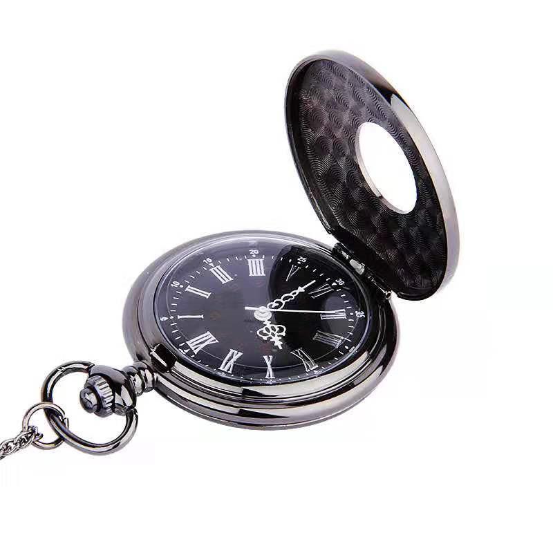 Reloj de bolsillo romano transfronterizo de fábrica, reloj de bolsillo vintage, reloj de cuarzo con collar de comercio exterior, reloj de bolsillo negro