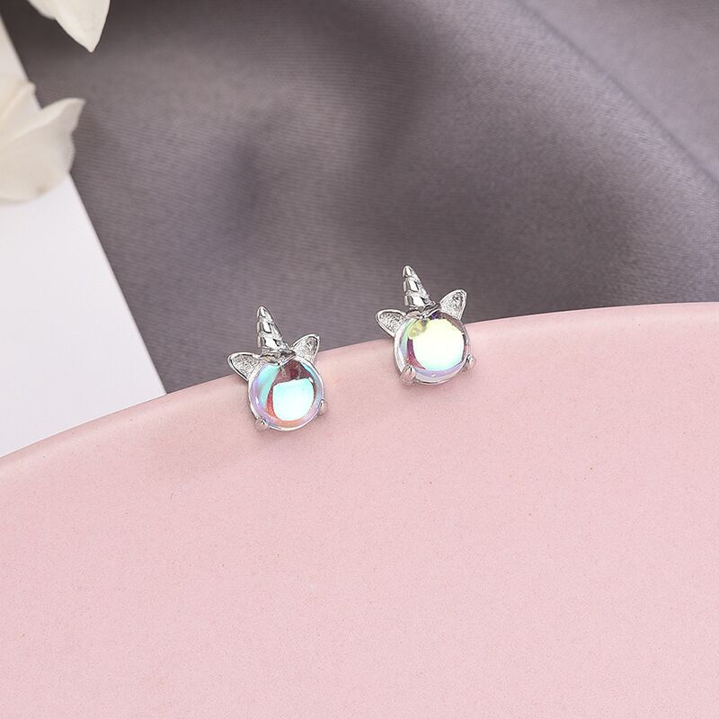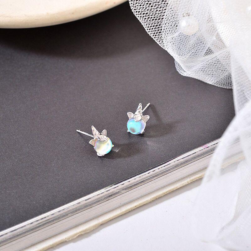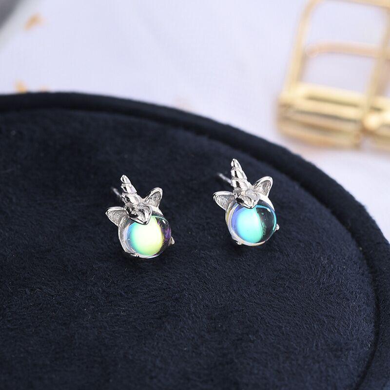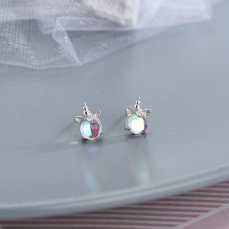 Aretes de Plata 925 de Piedra Lunar Colorida de Unicornio Combinan con Todo Personalidad y Temperamento Celebridad de Internet Aretes de Estilo Coreano para Mujer
