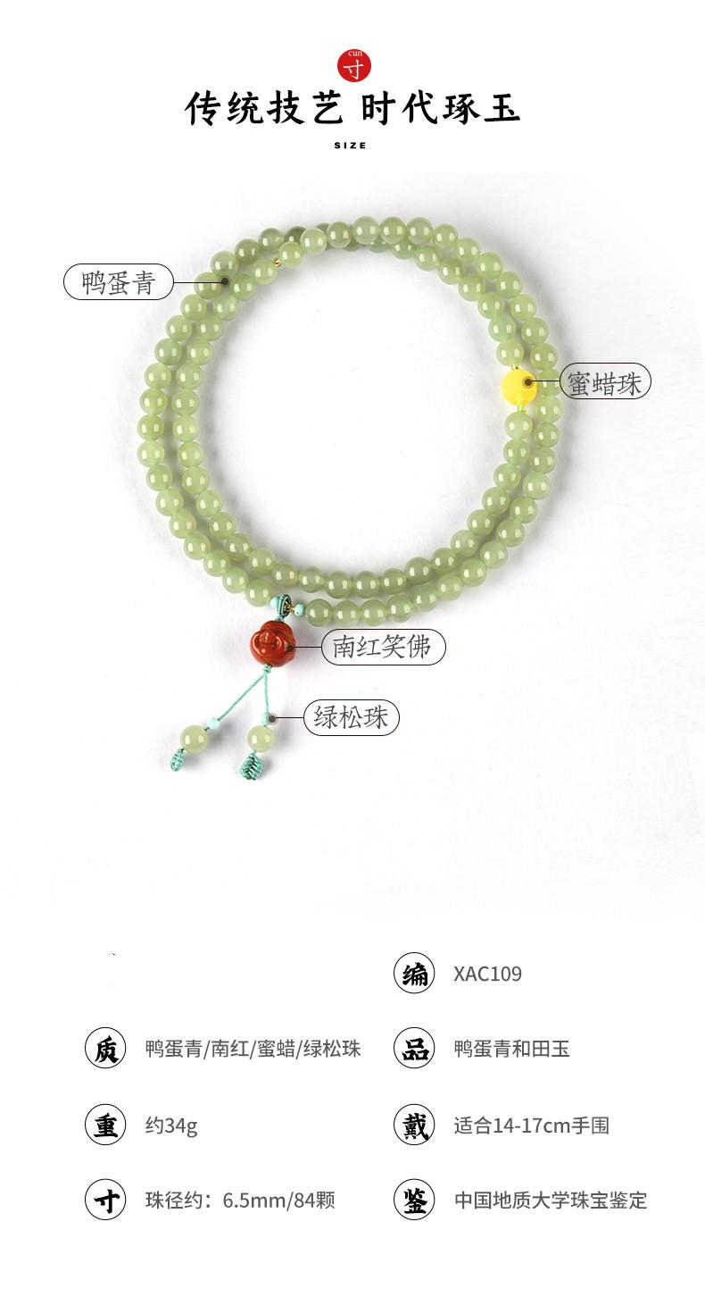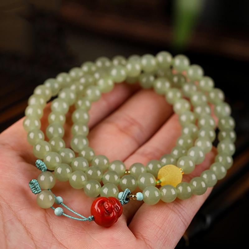 Pulsera de Jade Hetian Natural Agua Soleada Cuentas Redondas con Cuentas Hipped de Cera de Abeja Cabeza de Buda Rojo Sur Pulsera de Múltiples Vueltas para Mujer Cadena de Lana