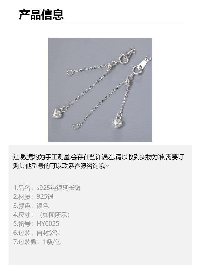 Cadena de extensión de plata esterlina S925 con forma de Y, ajustable, con forma de corazón, cadena de perlas, collar, pulsera, accesorios de bricolaje.