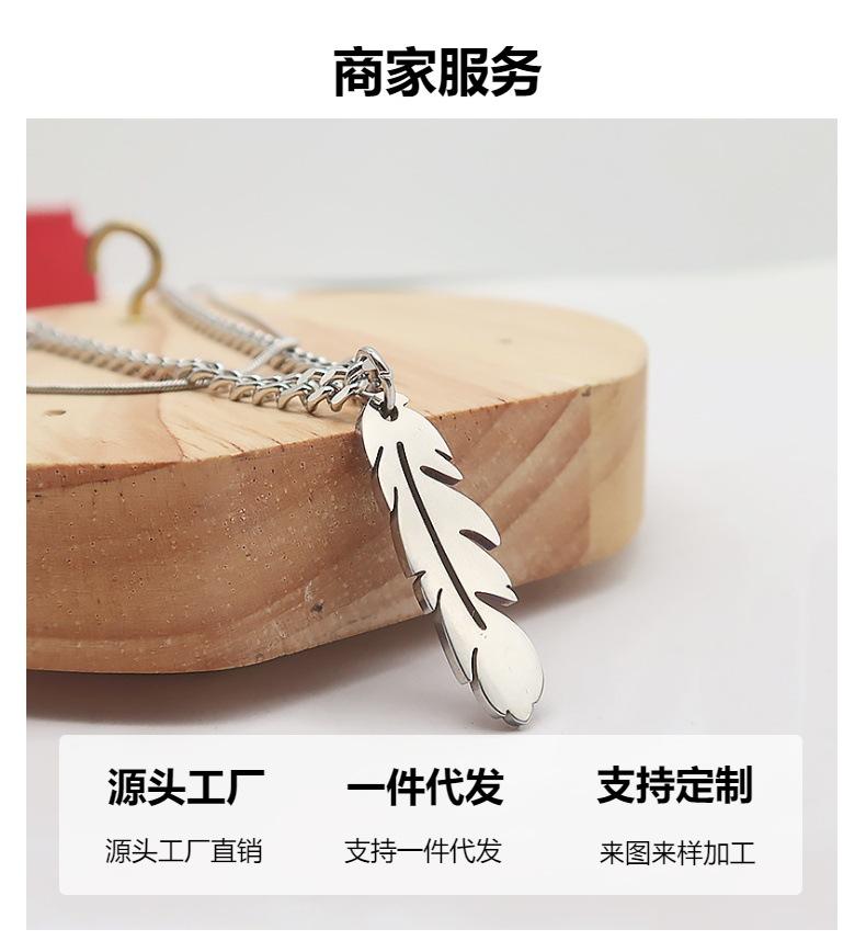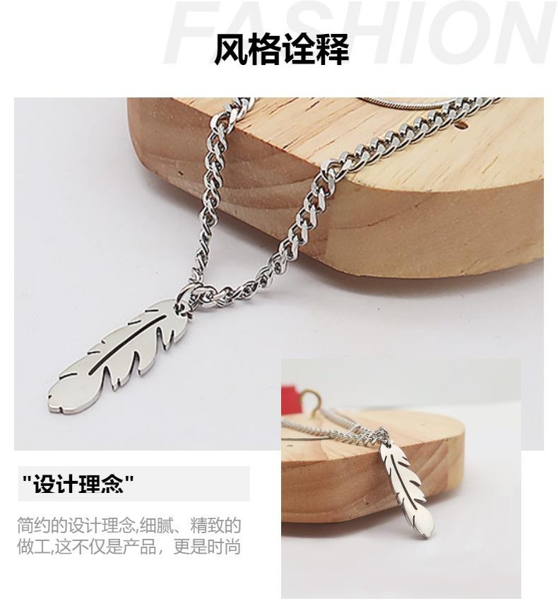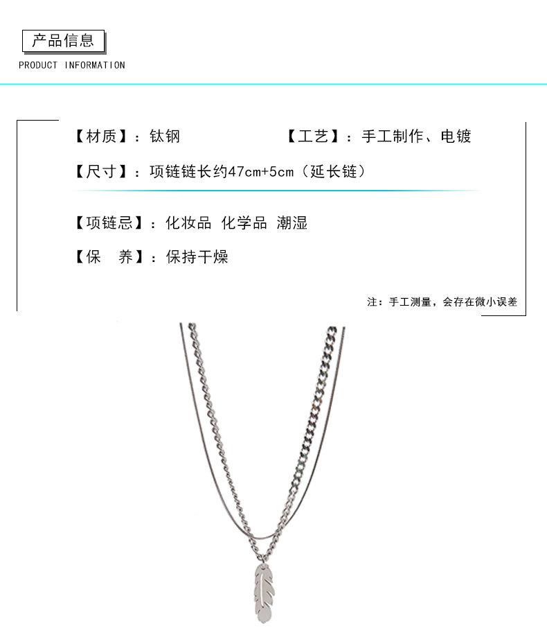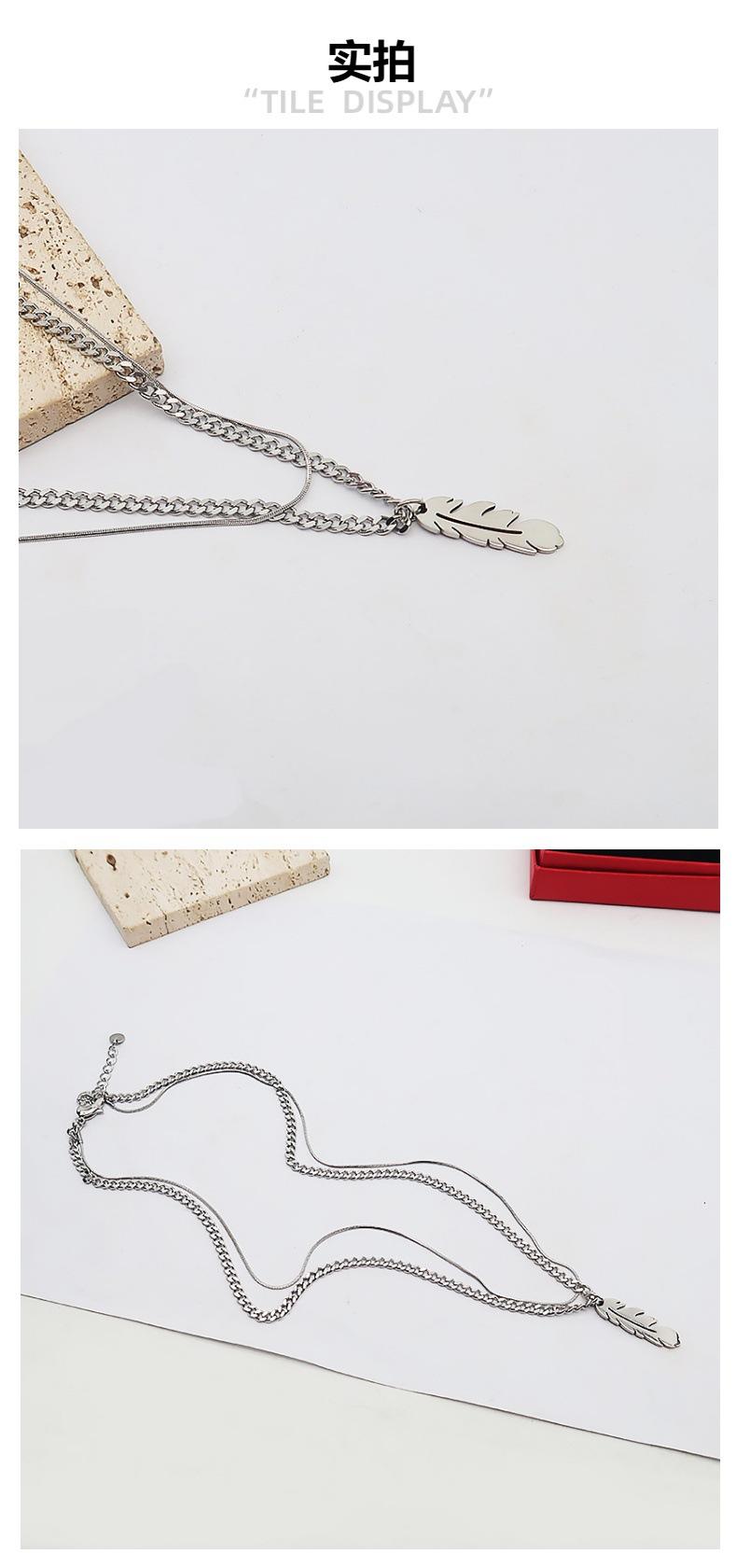 Collar de cadena de plumas con hueso de serpiente apilado de doble capa de acero de titanio para hombres y mujeres, estilo hip hop moderno, simple, estilo frío, joyería de cadena de clavícula.