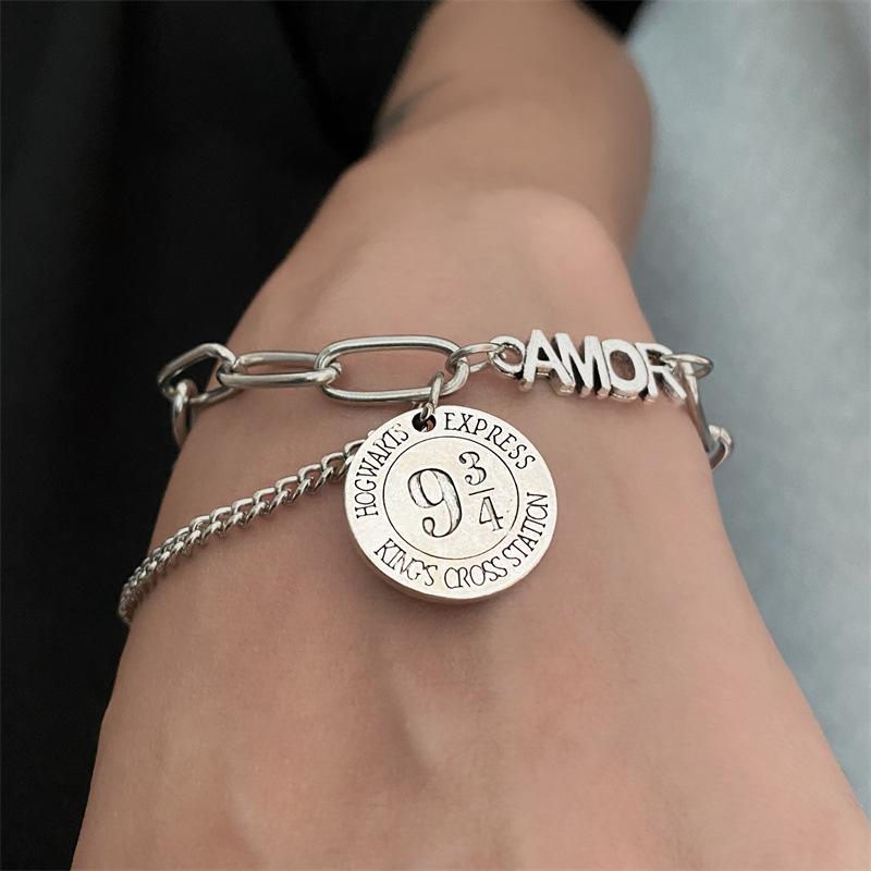 Harry Potter con Boleto Plataforma 9 y 3/4 Retro Redondo Marca Collar Colgante Joyería para Pareja Pulsera