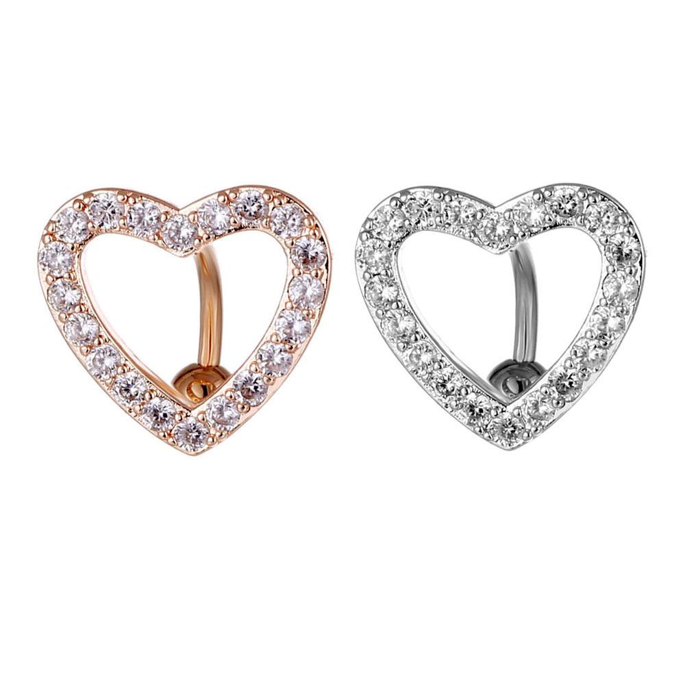 Clavo para Ombligo en Forma de Corazón Moda Europea y Americana Joyería para Perforación Anillo para Ombligo de Circonita en Forma de Corazón Perforación de Botón para Ombligo de Corazón