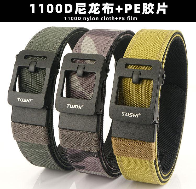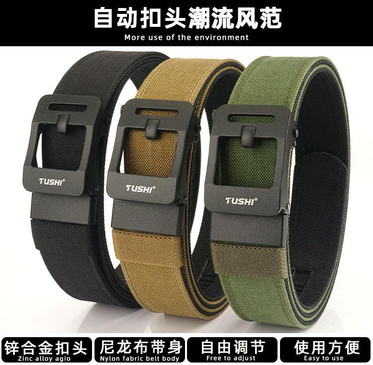 3.8 nueva hebilla automática para hombre cinturón de lona de nailon engrosado de doble capa casual táctico de doble uso cinturón para colgar armas al por mayor