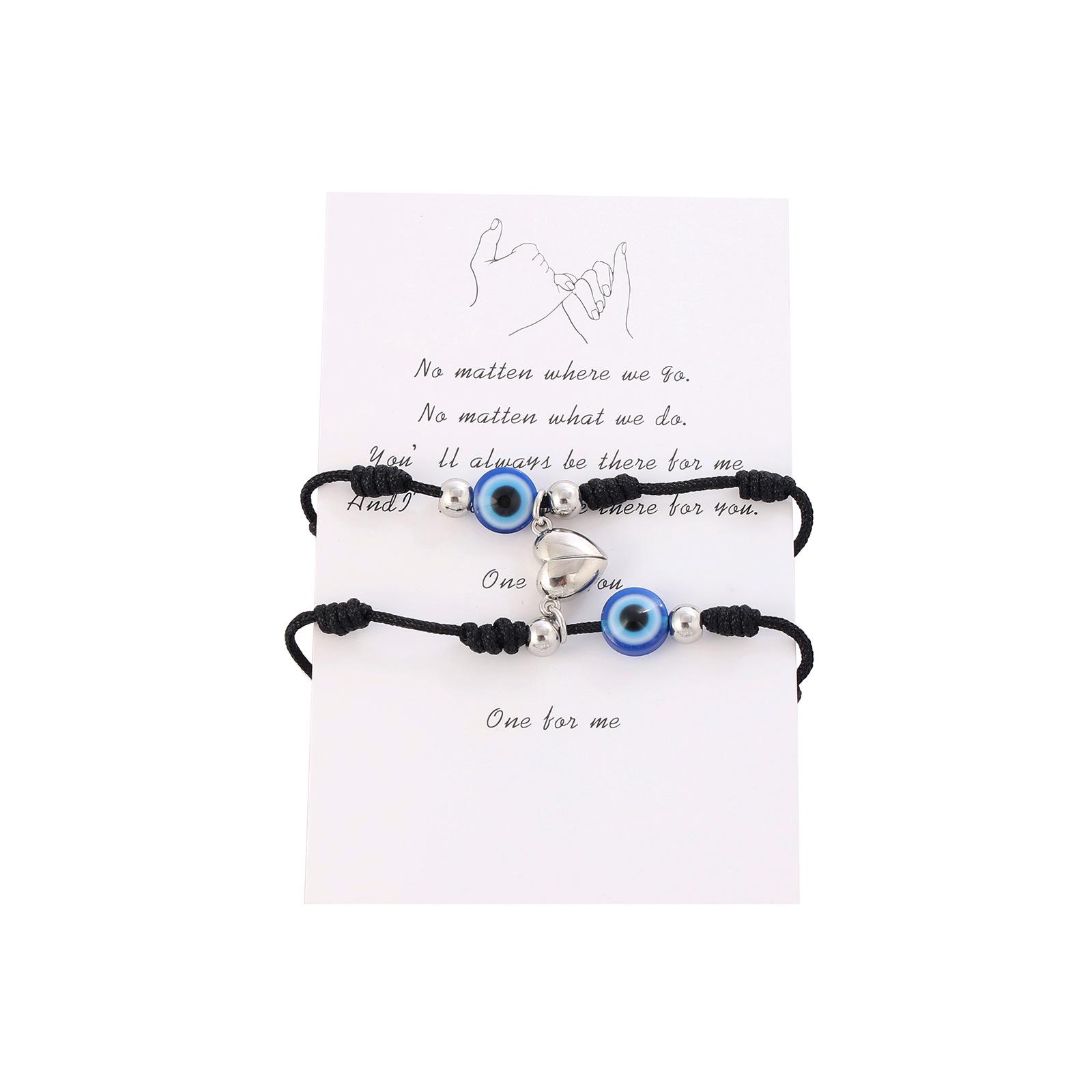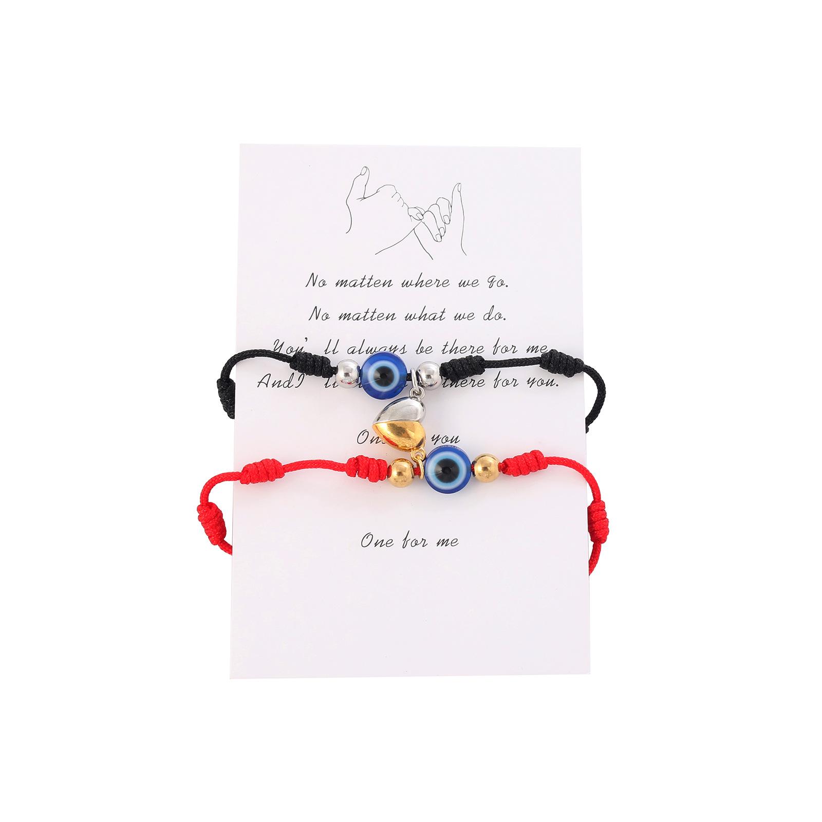 Esta pulsera se vende en pares, la cuerda está hecha de nailon, el imán de corazón está hecho de aleación de zinc respetuosa con el medio ambiente, las cuentas están hechas de acero inoxidable, el diámetro del ojo es de aproximadamente 10 mm, la pulsera se puede ajustar para usar en el rango de 14-26 cm, un par de tarjetas de papel pesa aproximadamente 13 gramos, ¡bolsa OPP! Se admite la personalización, ¡póngase en contacto con el servicio de atención al cliente para la personalización!