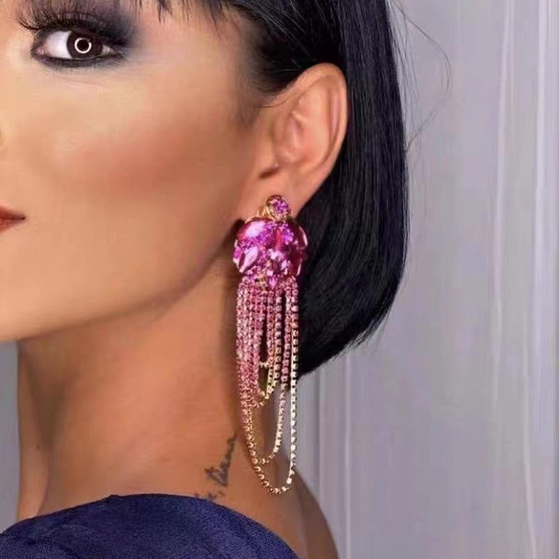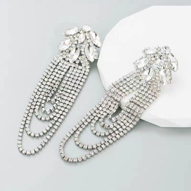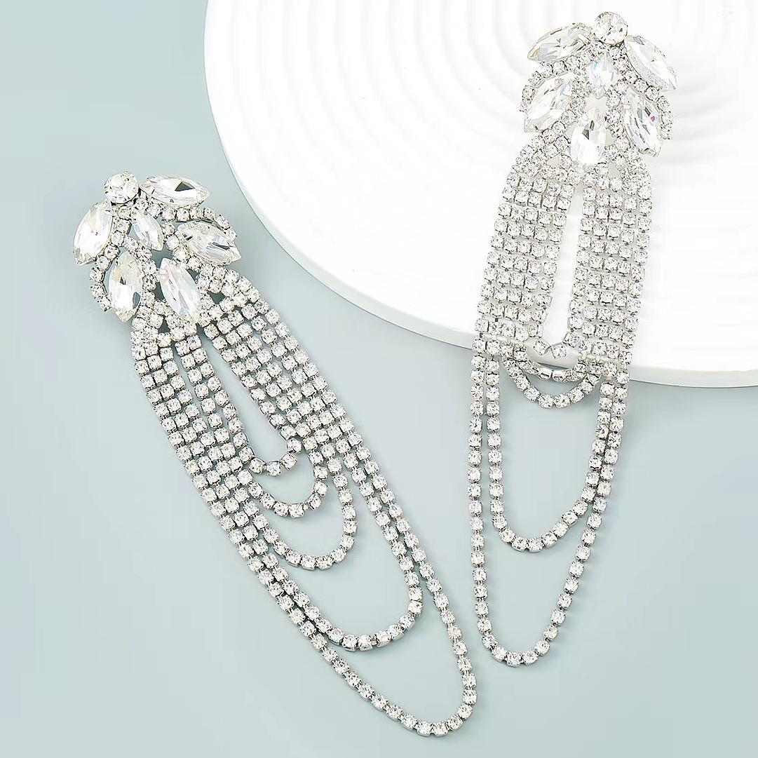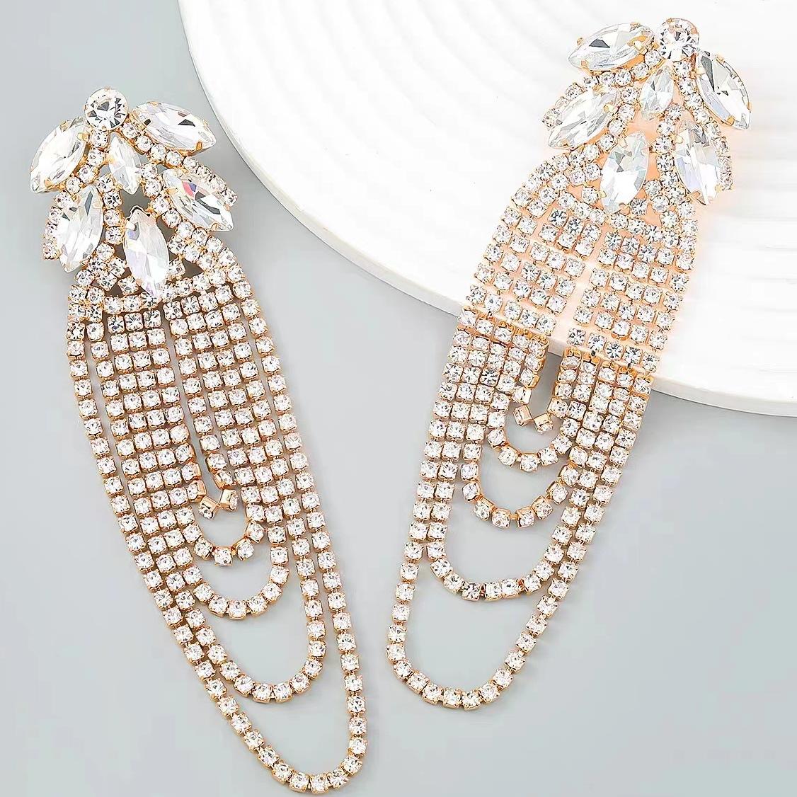Pendientes exagerados europeos y americanos con borlas de diamantes de imitación multicapa, pendientes de lujo ligeros de pasarela de moda con incrustaciones de diamantes de personalidad para mujer
