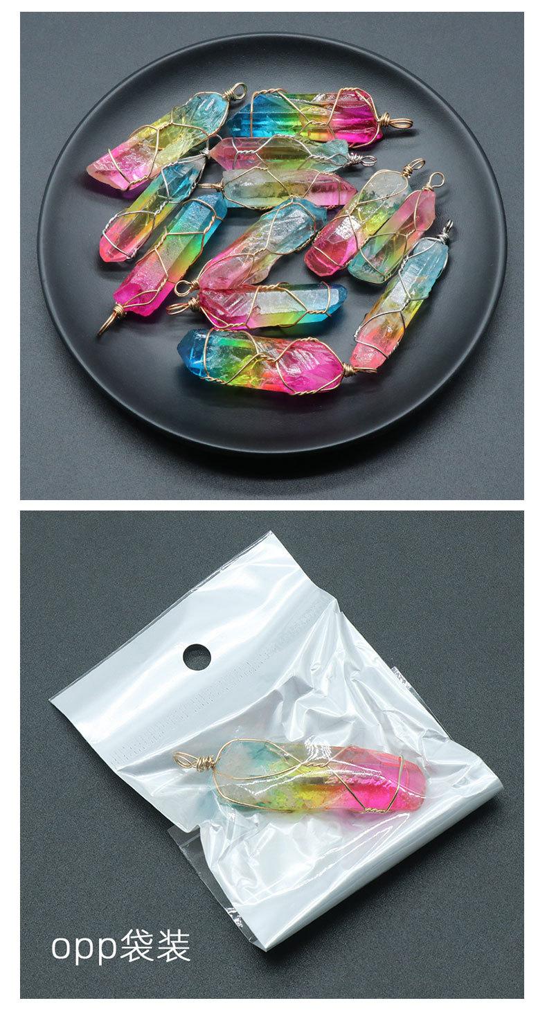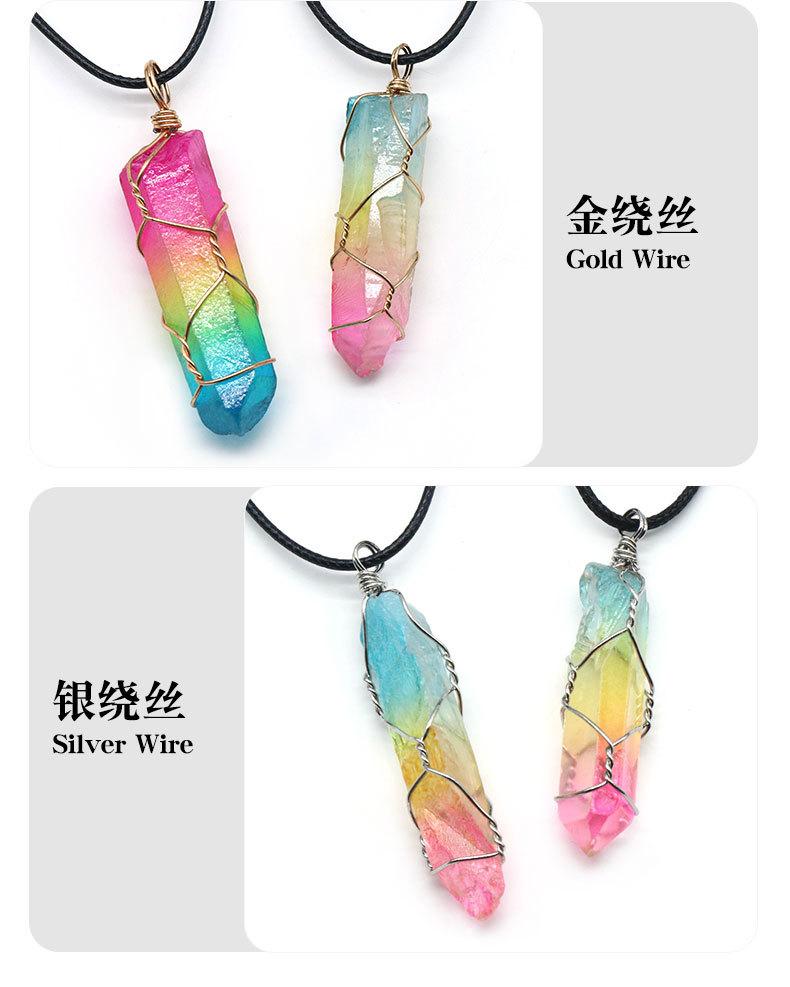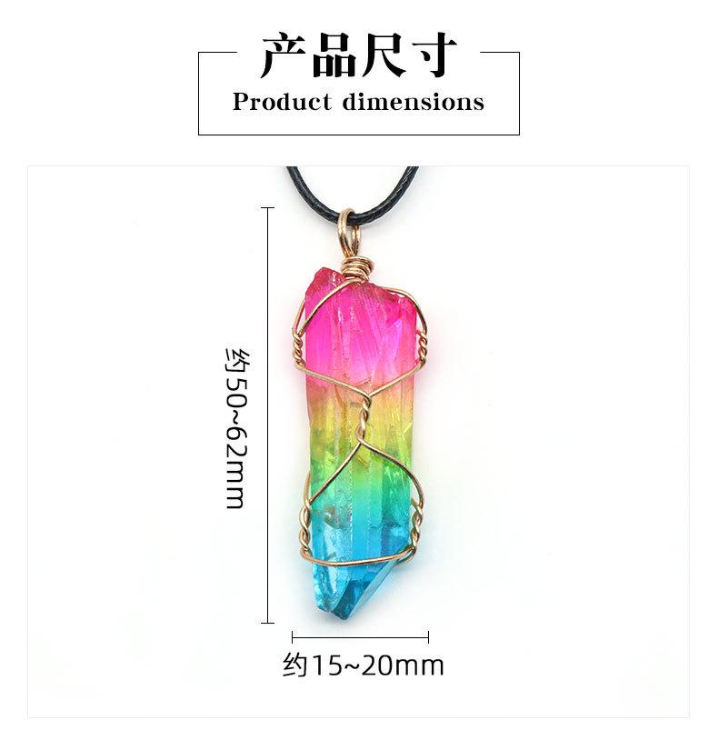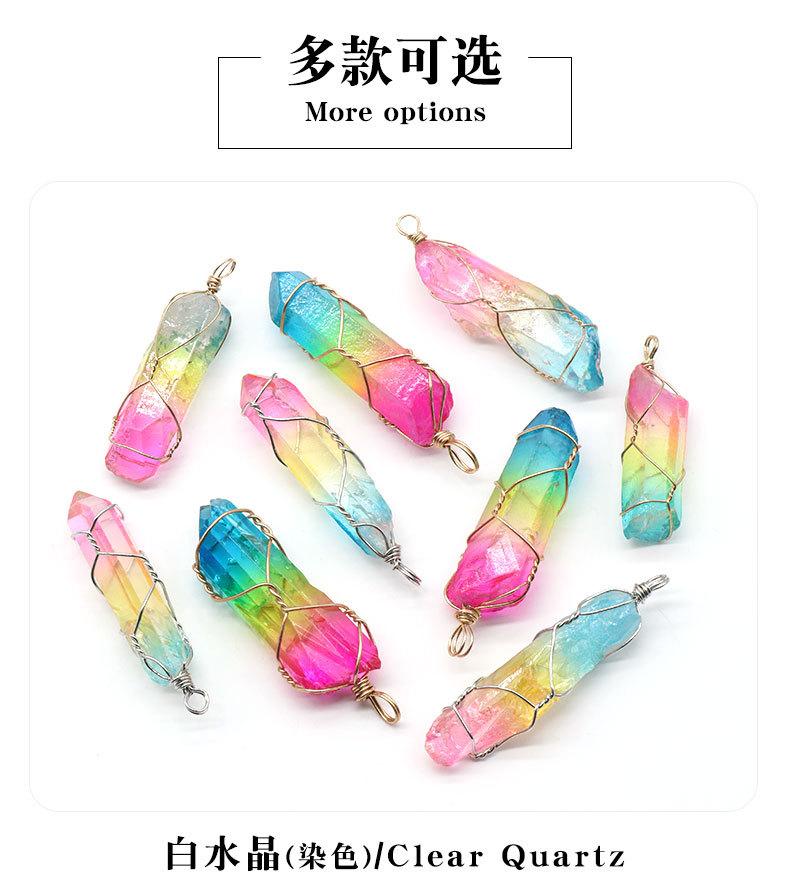 1535-Columna de Cristal de Piedra Bruta Natural Colgante Enrollado Columna de Cristal Arcoíris Electrochapado Colgante Colorido Cristal Irregular